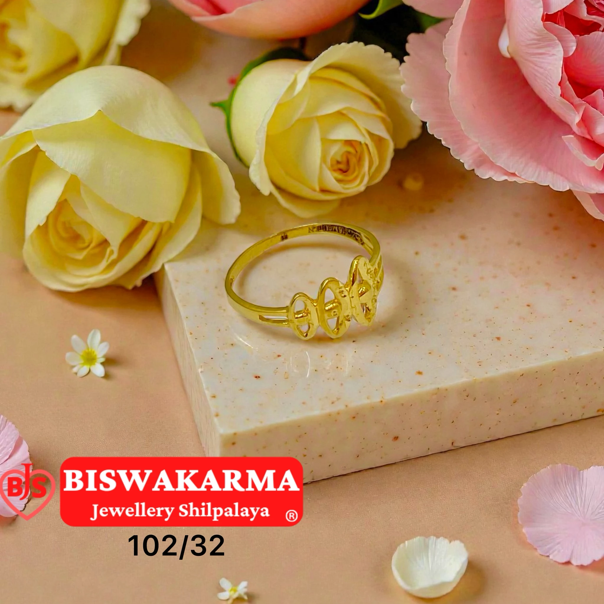Thin band carries a joined script love form across the top. Letters rise slightly from the shank with smooth edges and a plain mirror polish from bench work.