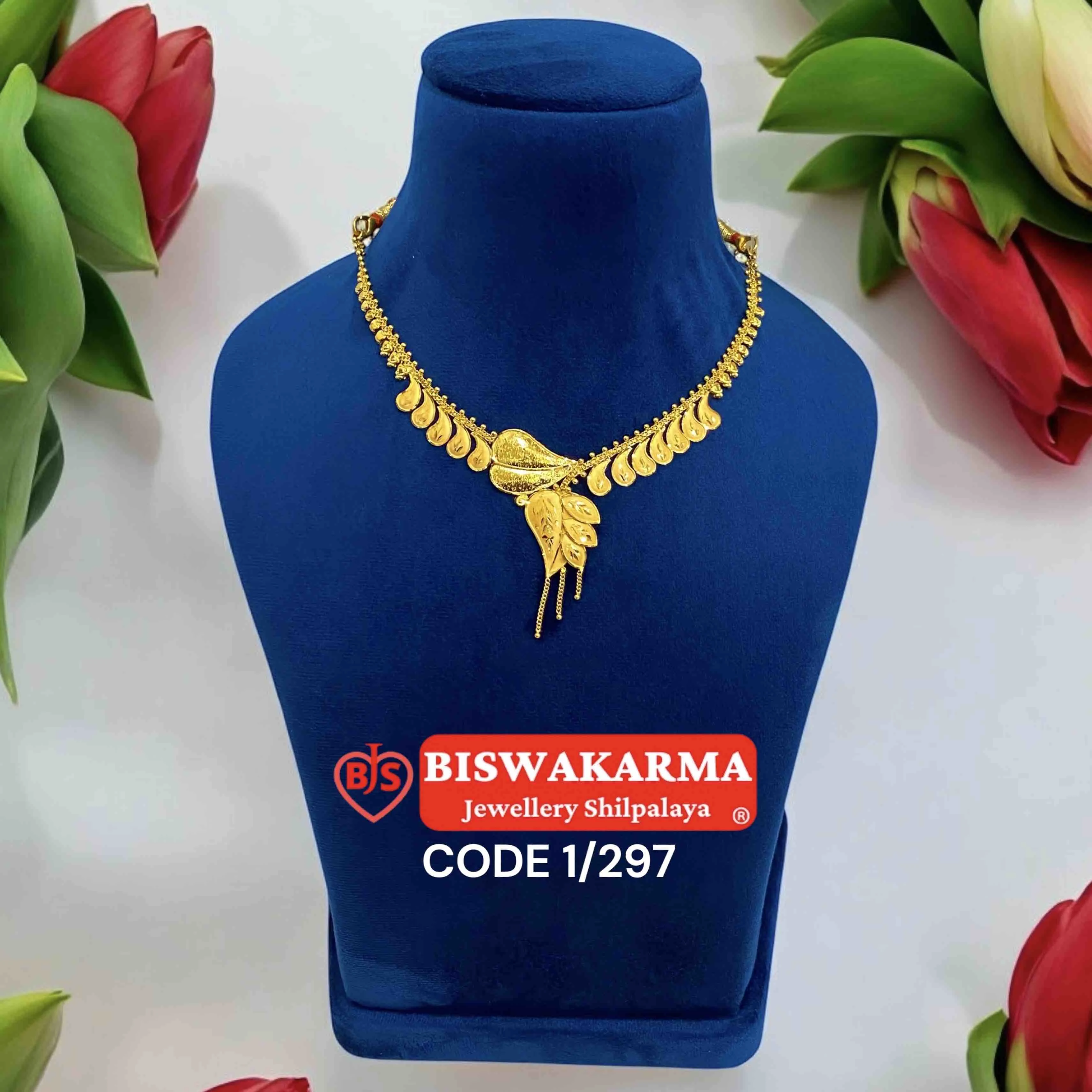 A graceful gold necklace with cascading leaf motifs and fine detailing, blending nature’s beauty with timeless traditional craftsmanship.