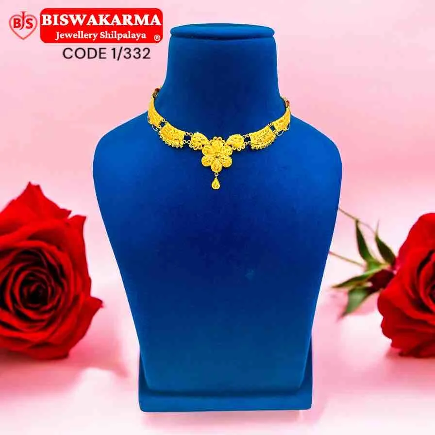 A graceful gold necklace featuring a blooming floral motif with fine detailing, capturing the essence of beauty, tradition, and femininity.