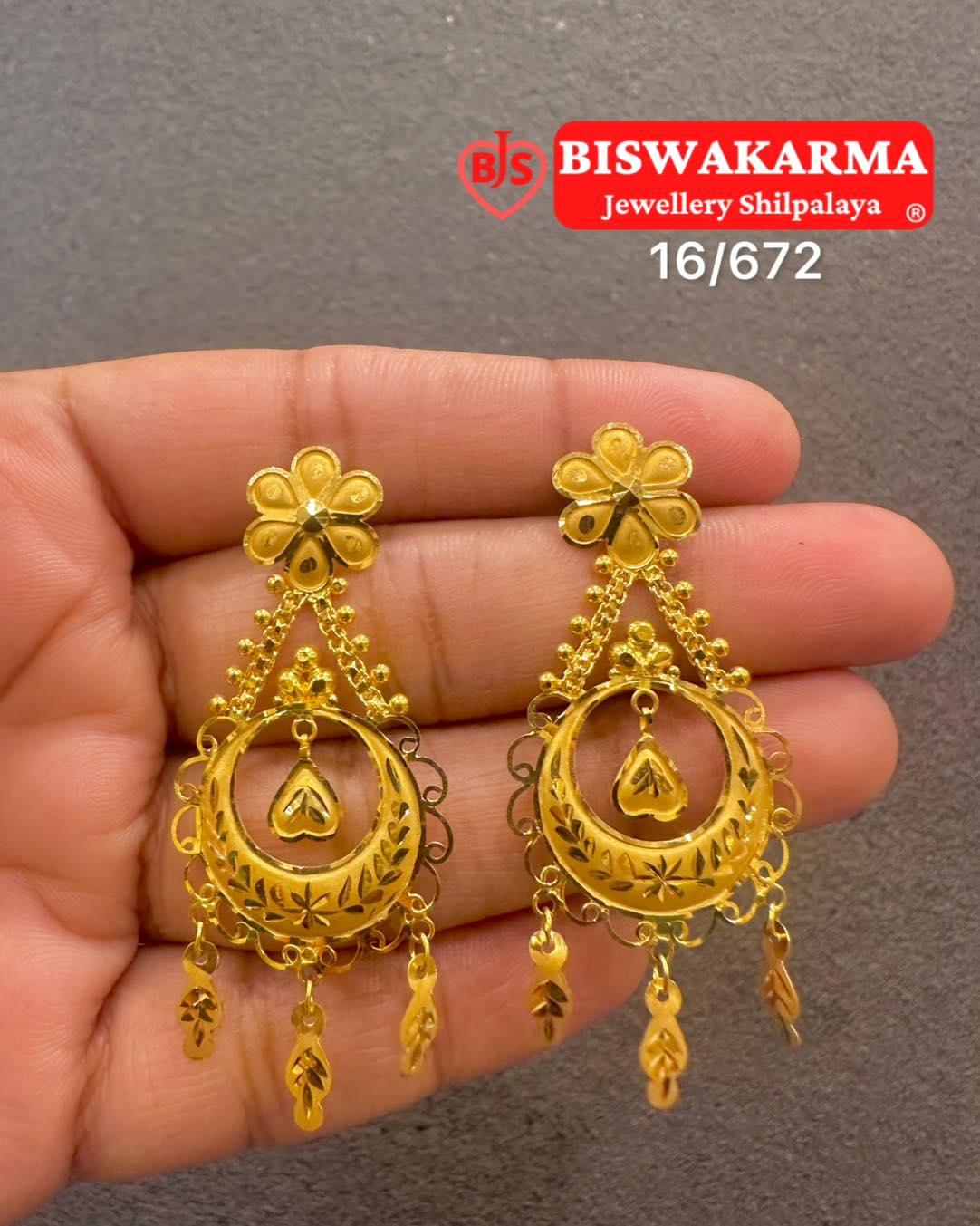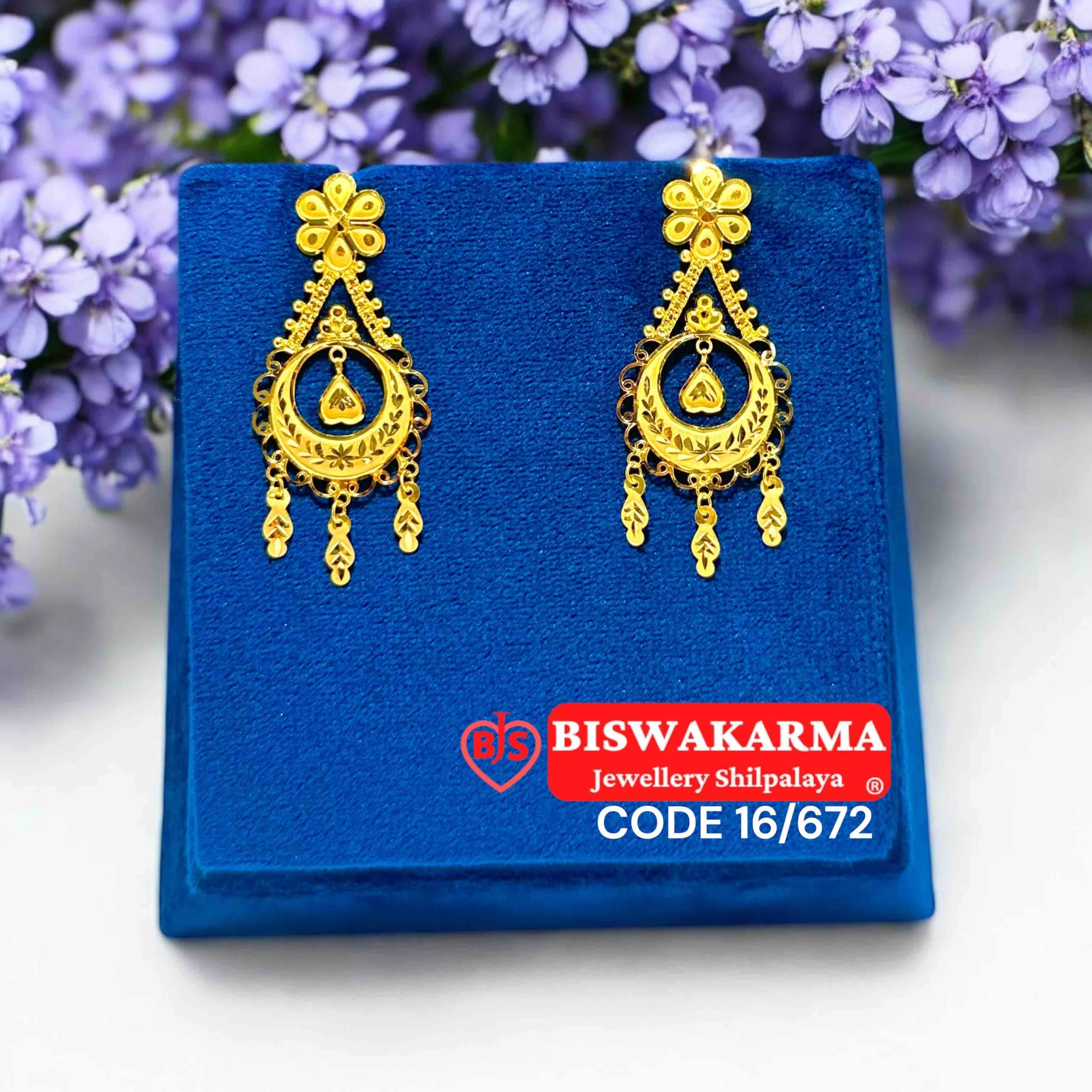 A statement pair crafted with teardrop and arch motifs, these earrings blend floral charm with regal detail, adding timeless beauty to every festive look.
