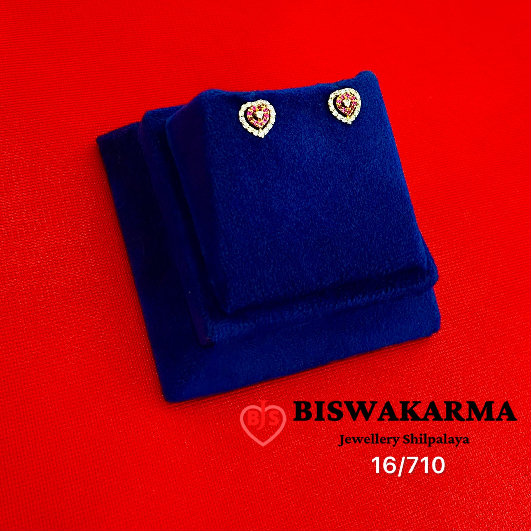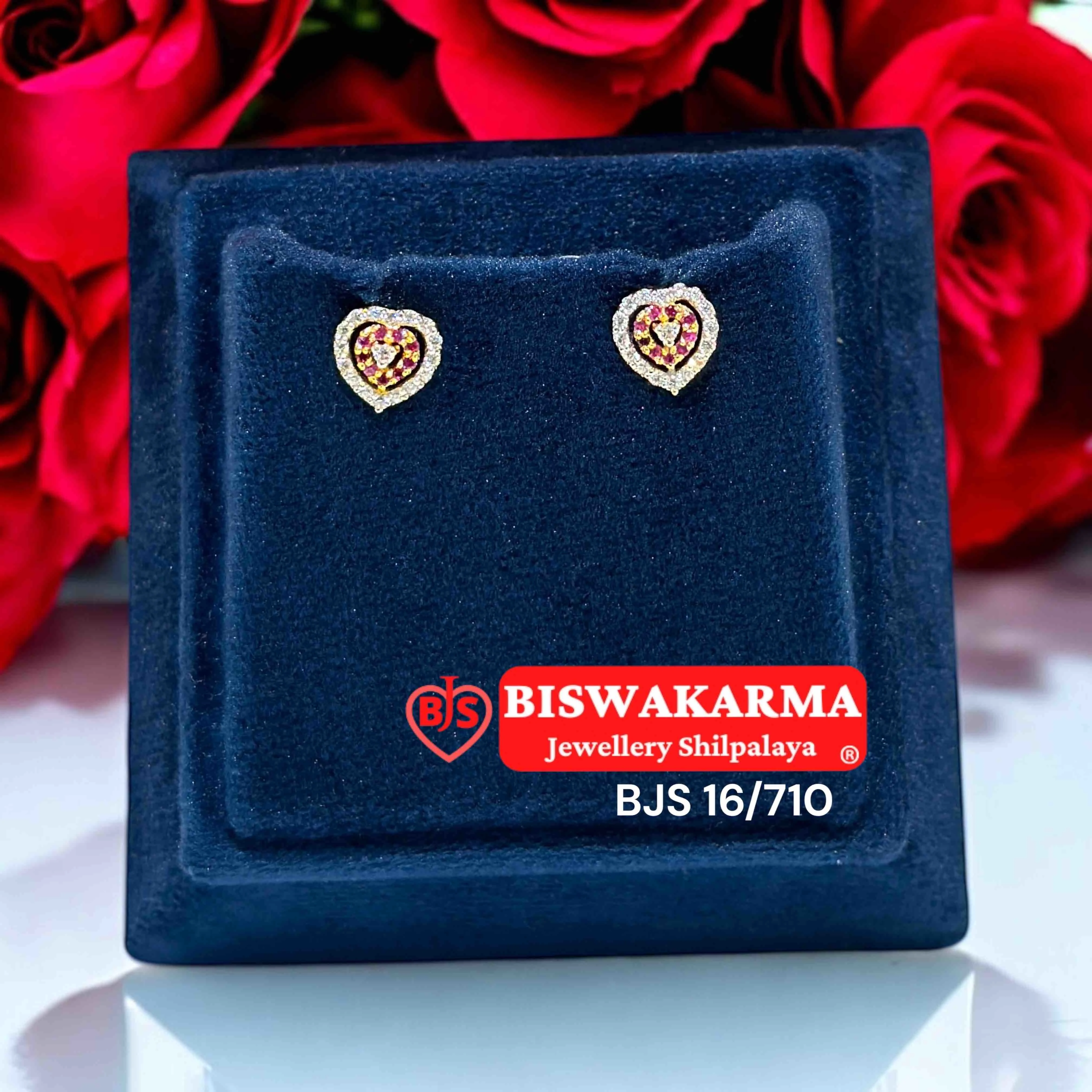 Lovely gold tops earrings with red heart centers and shimmering borders, made to express love with a touch of shine.