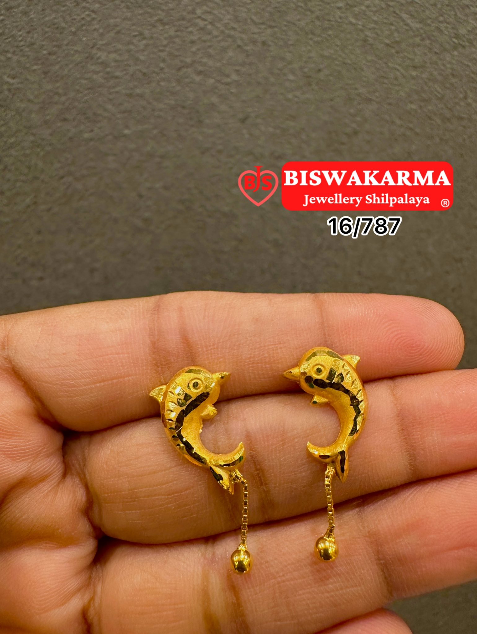 16/787 Golden Dolphin Earrings