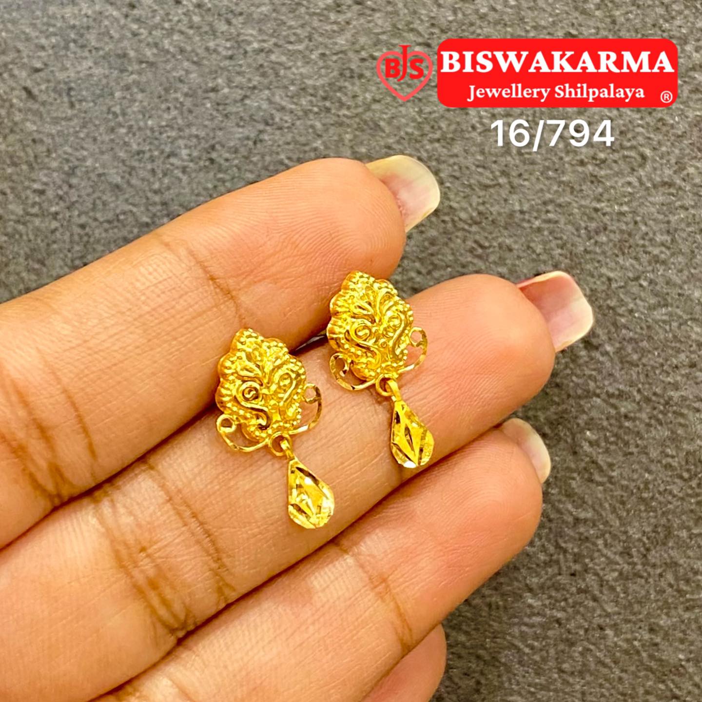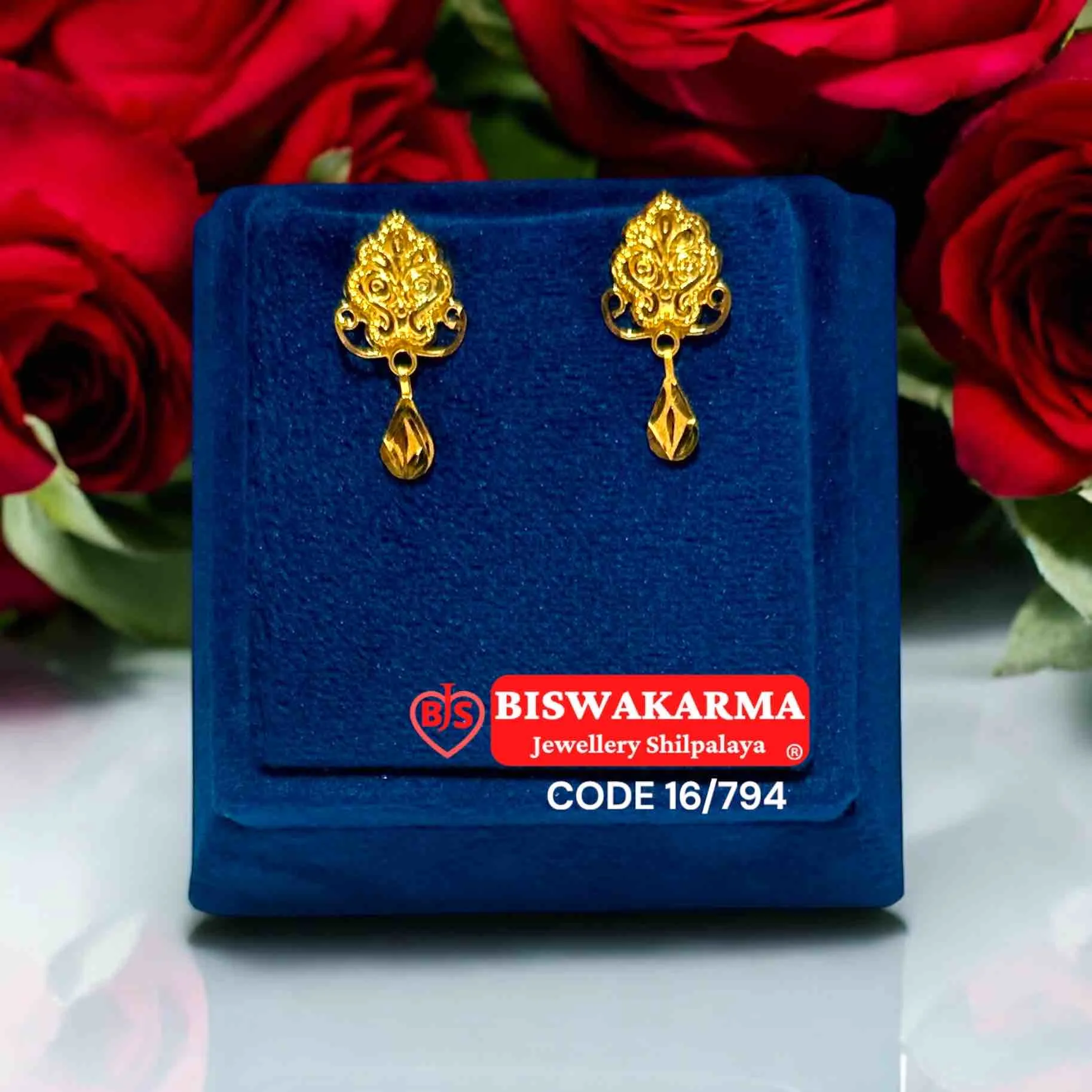 A royal-inspired floral earring with intricate curves and a shining teardrop charm, crafted to bring timeless grace to any festive or elegant outfit.