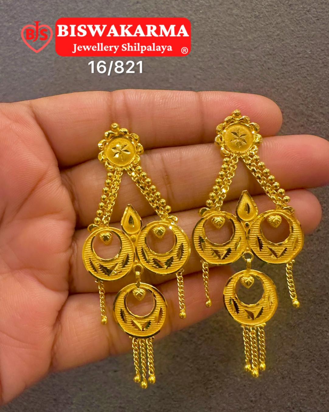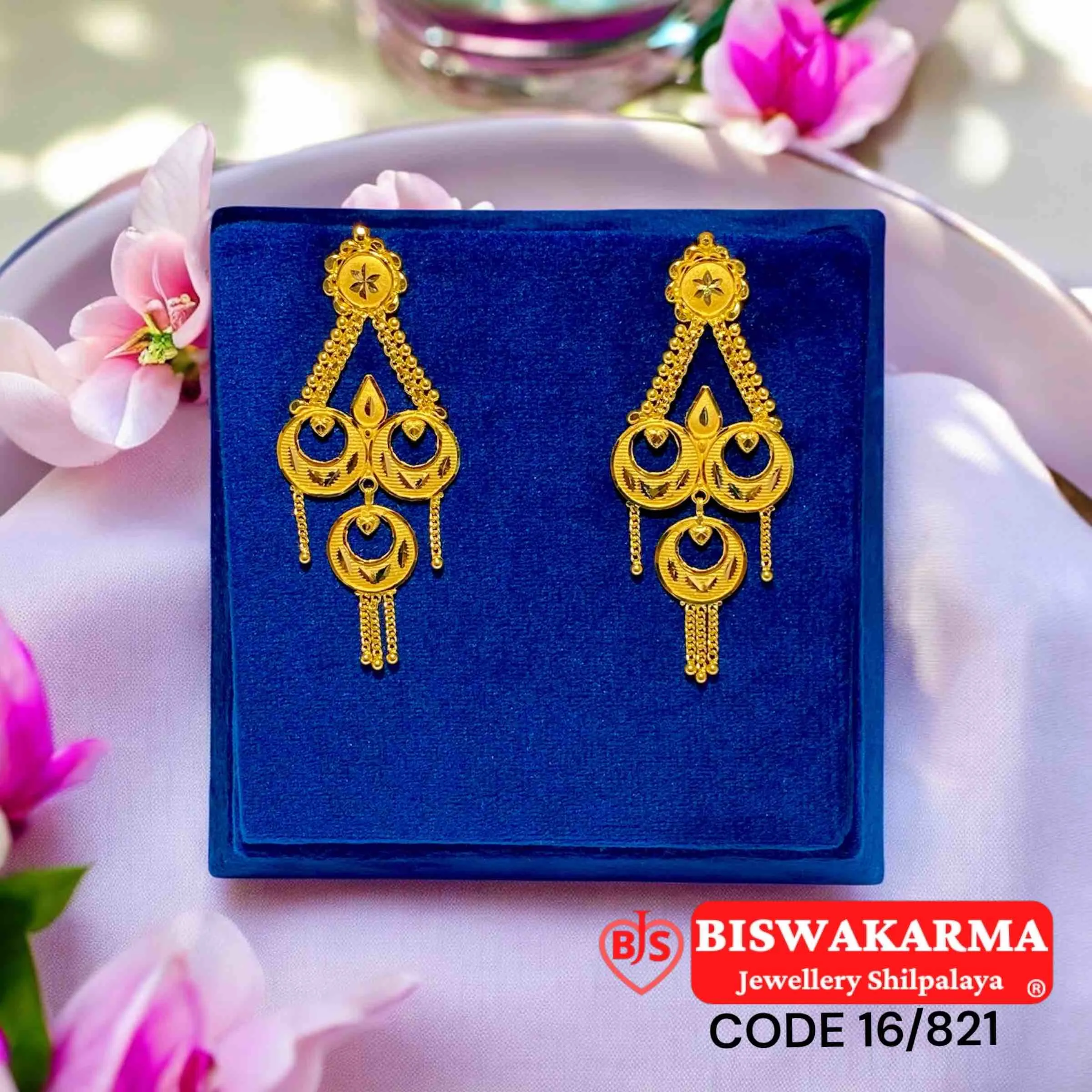 Elegant gold kanbala earrings with layered hoop drops and floral tops, designed to bring festive radiance and timeless beauty.