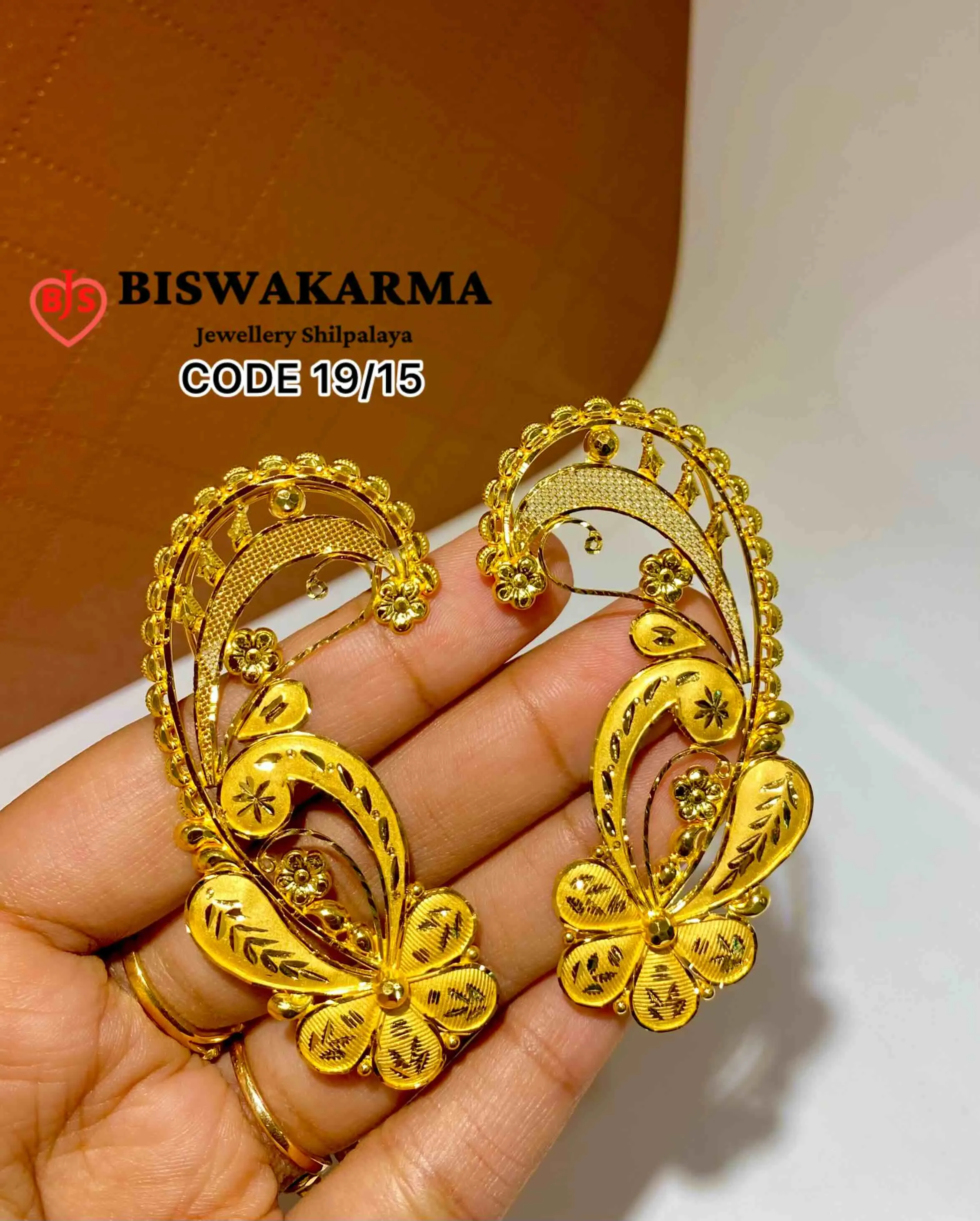 Graceful full kaan earrings with delicate floral filigree and arched detailing, made to highlight traditional charm in every festive look.