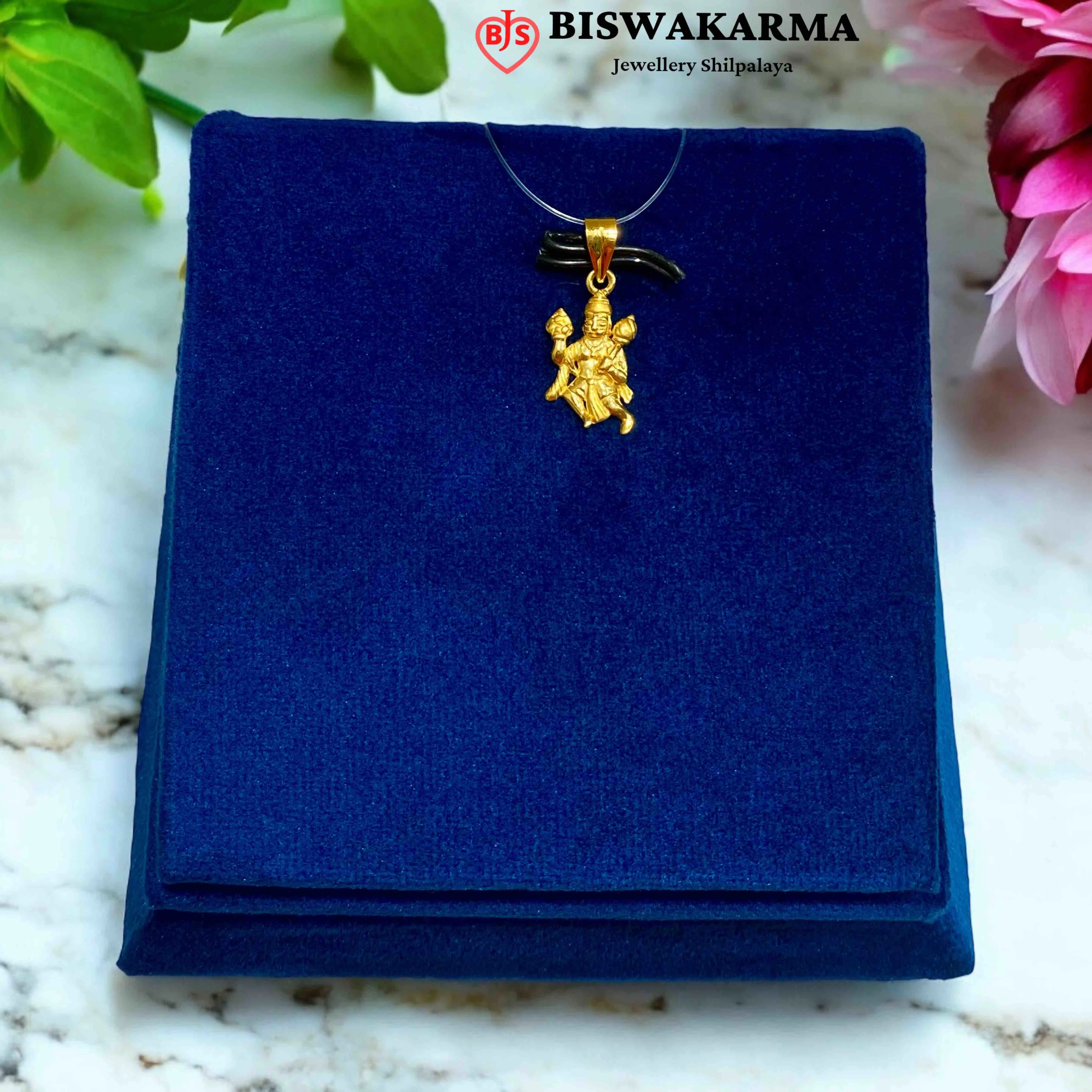 A divine gold locket depicting Bajrang Bali in graceful form, symbolizing eternal love, devotion, and spiritual harmony.
