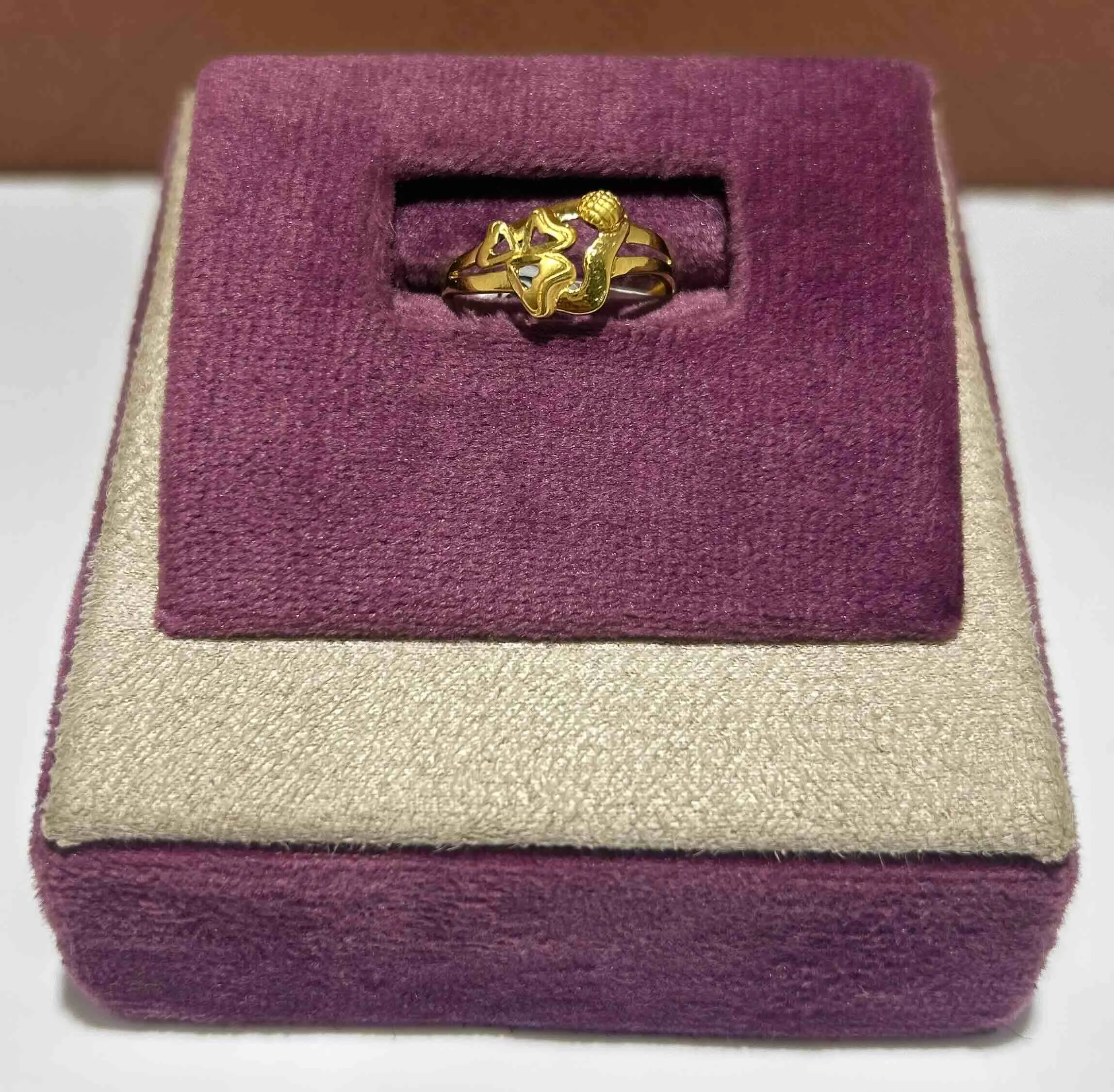 A royal-inspired gold ring with an elegant floral swirl motif. Its detailed curves bring charm and timeless grace to every look.