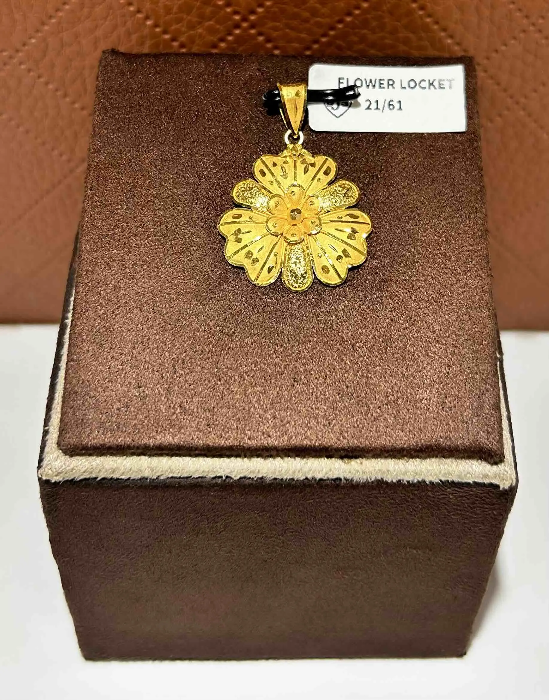 A stunning floral gold locket with layered petals and a bright center bloom, symbolizing beauty, joy, and timeless charm.