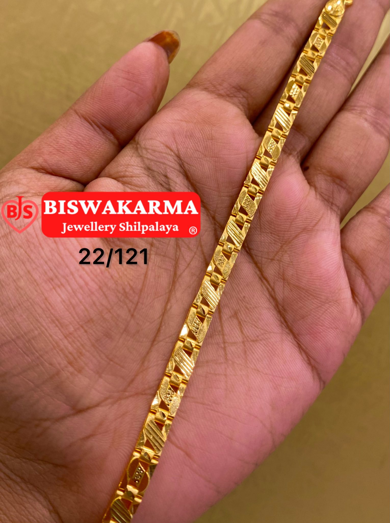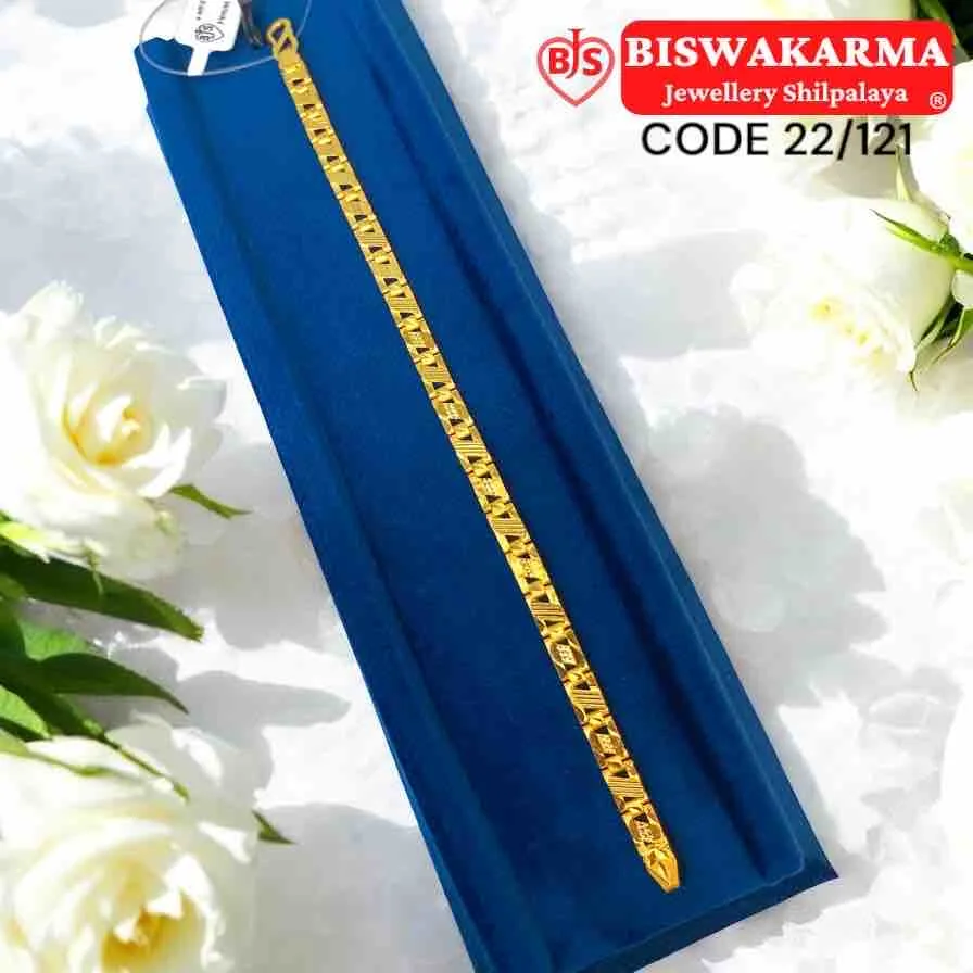 A striking gents wristlet with geometric gold block patterns, crafted to highlight modern artistry and timeless strength in a refined design.