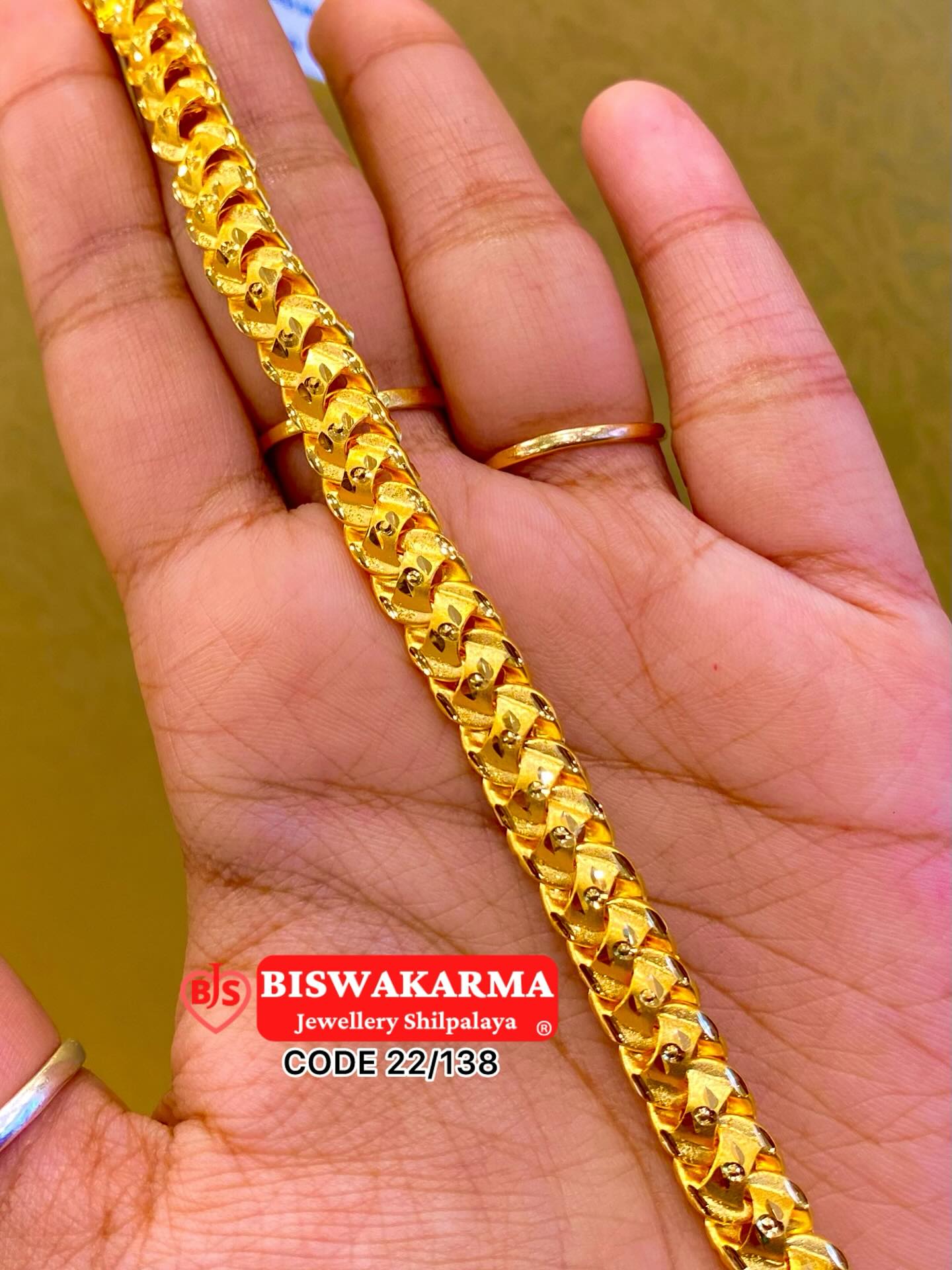 Crafted with thick interwoven links, this gents wristlet showcases bold elegance in pure gold, designed to make a confident and timeless statement.