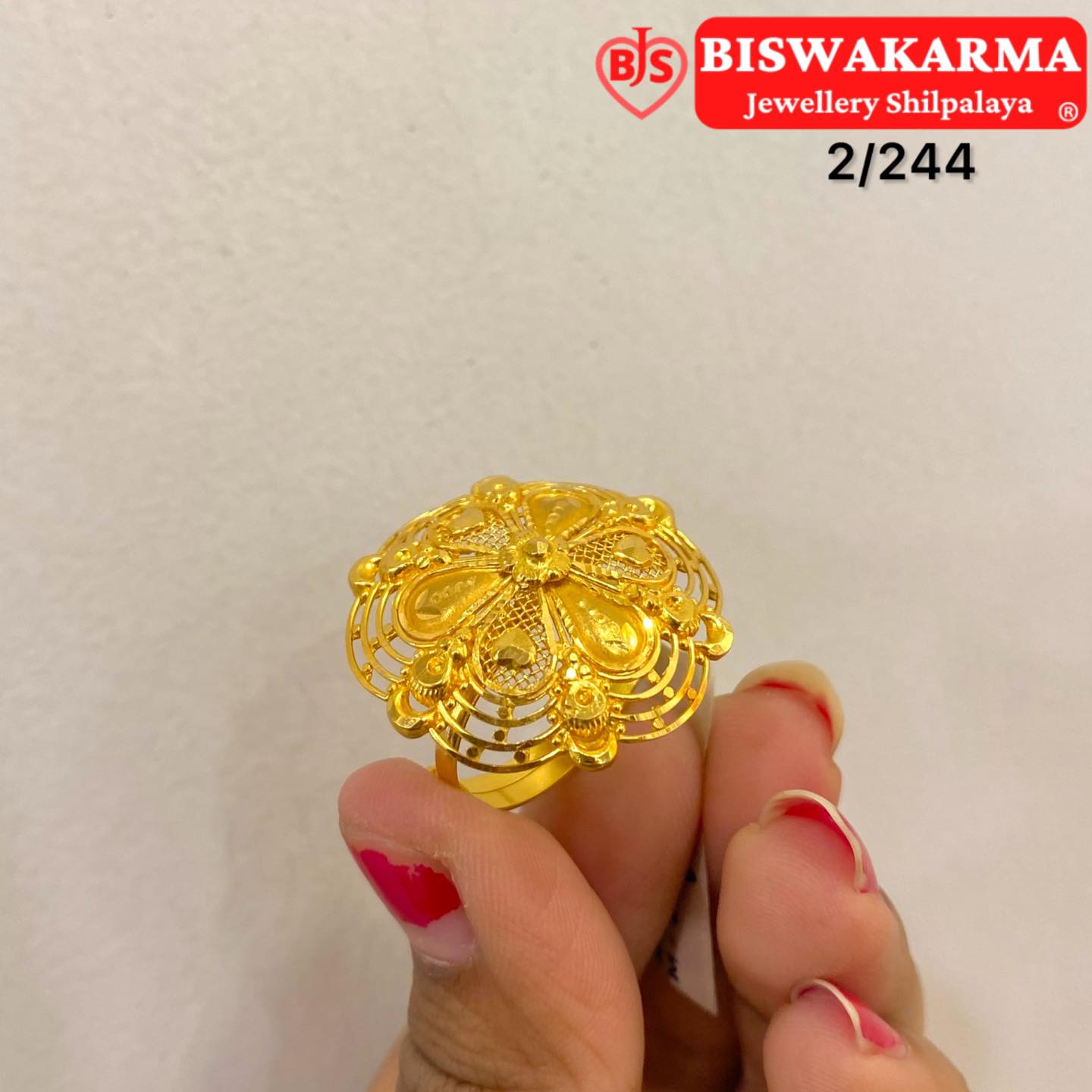 A stunning umbrella-style ring with intricate petal filigree and raised bead detailing, blending royal charm with elegant golden artistry.