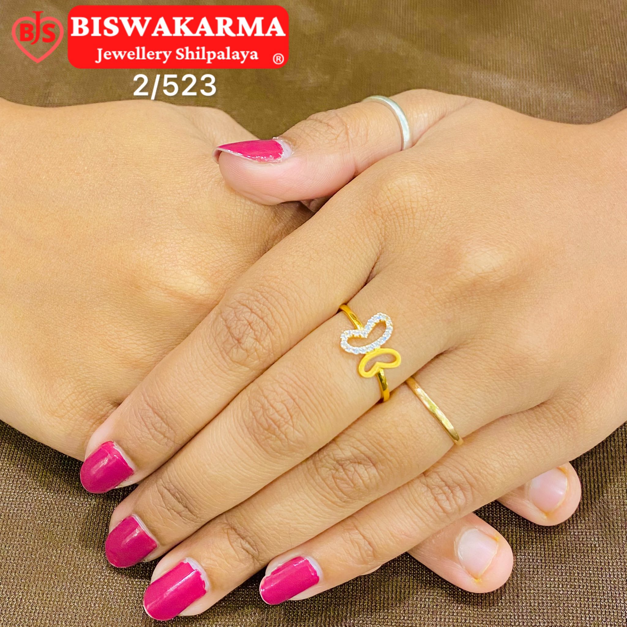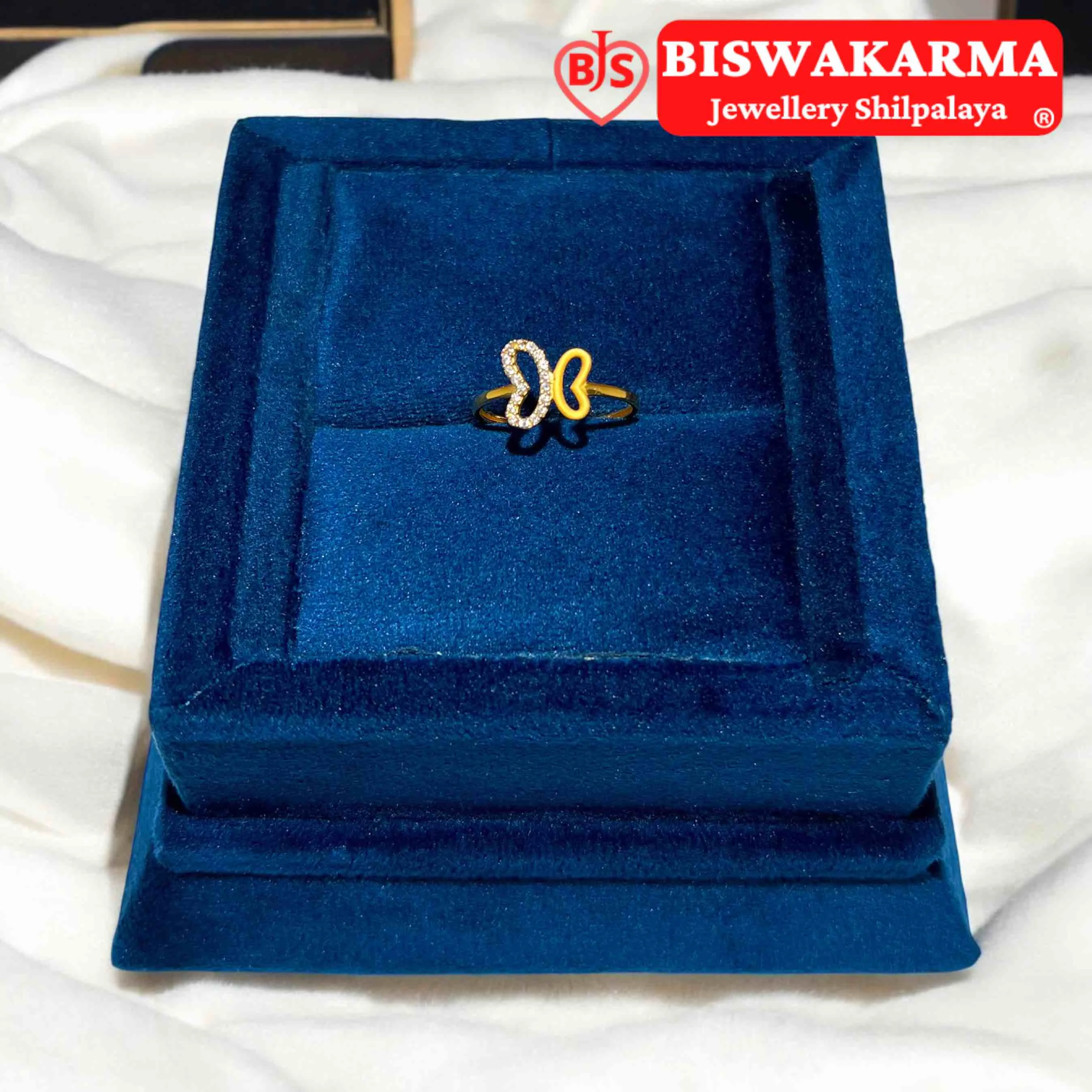 A delicate gold butterfly ring with dual tones of white and yellow finish, crafted to capture the beauty and freedom of fluttering wings.