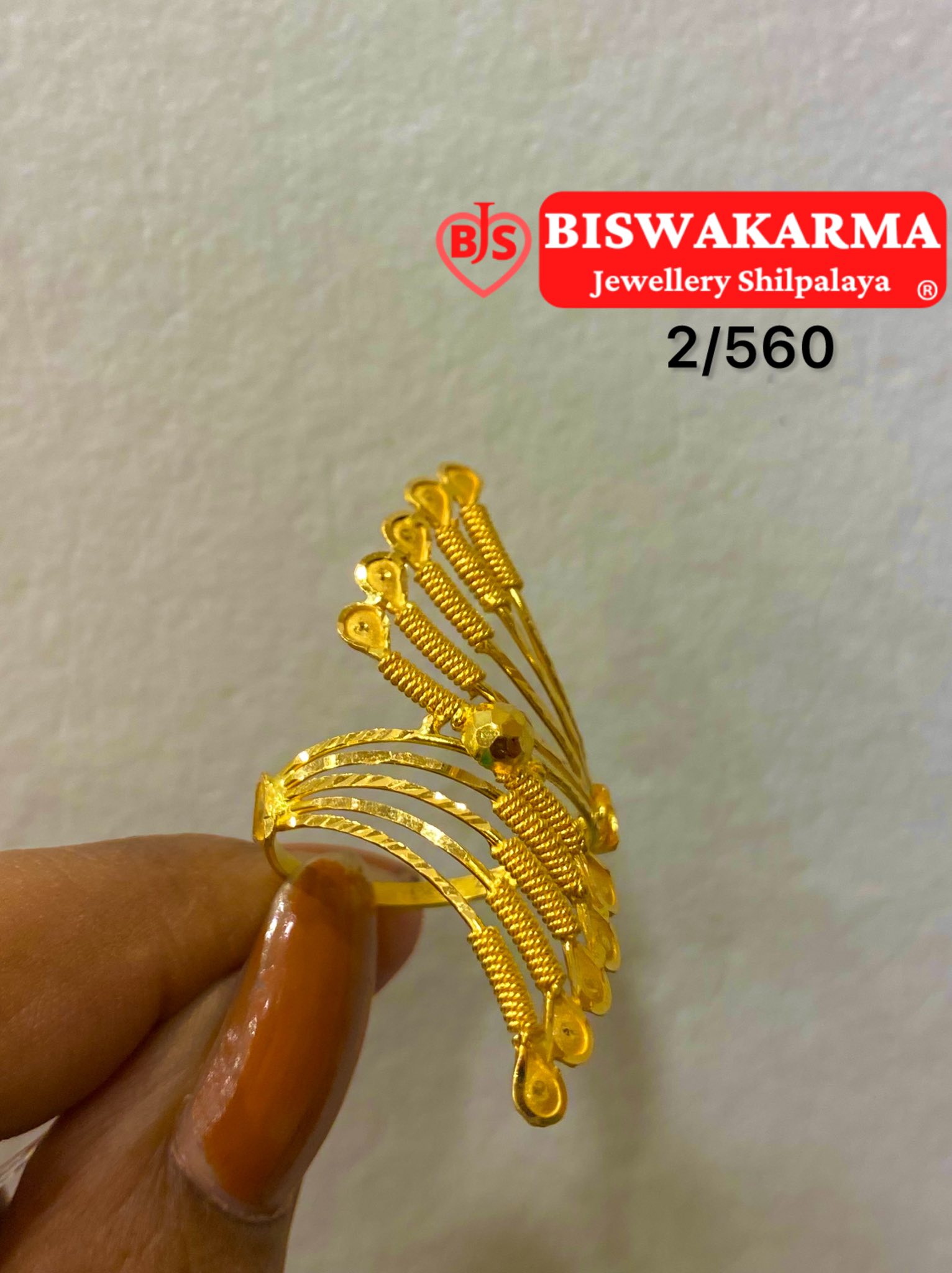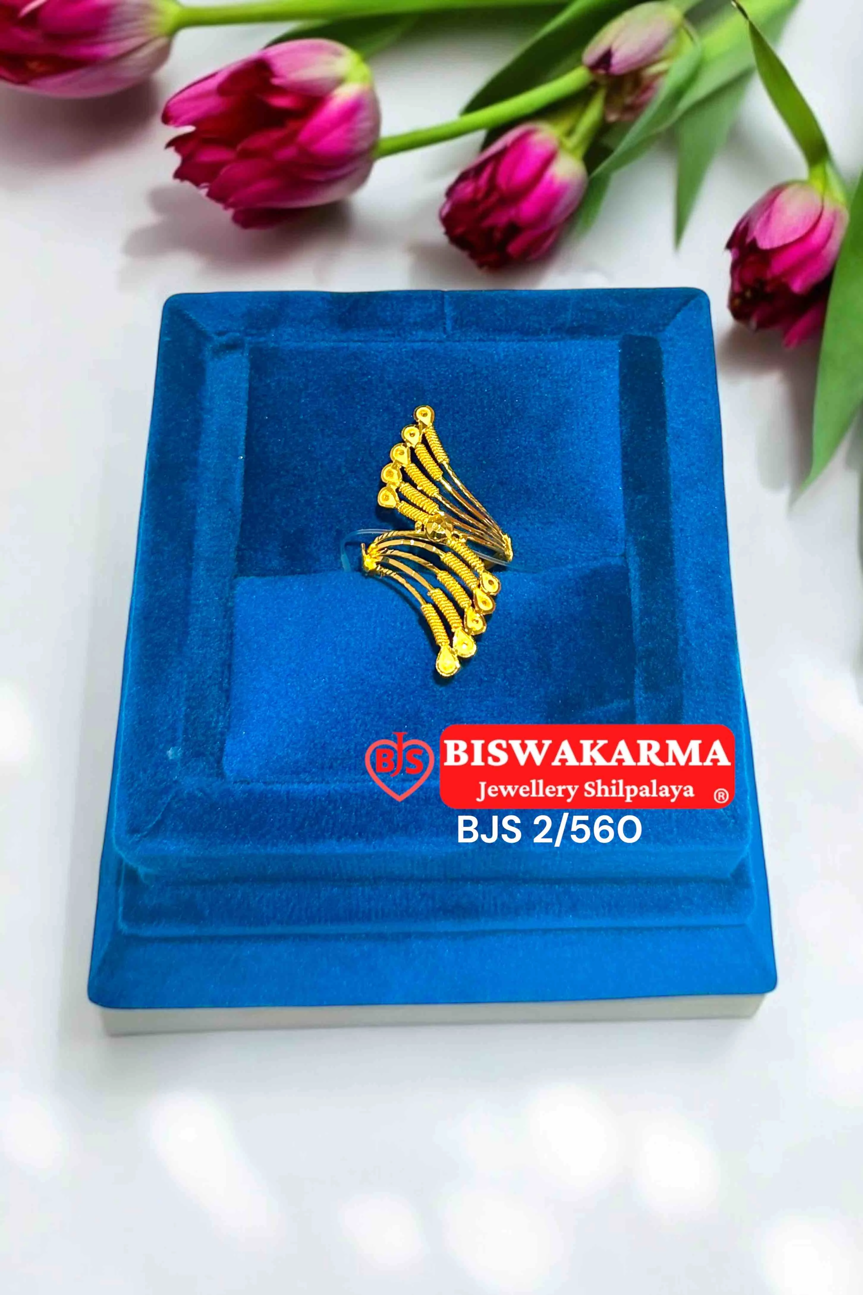 A sleek gold boat ring with flowing curved bands and bead tips, creating a soft, elegant motion that shines with modern charm.