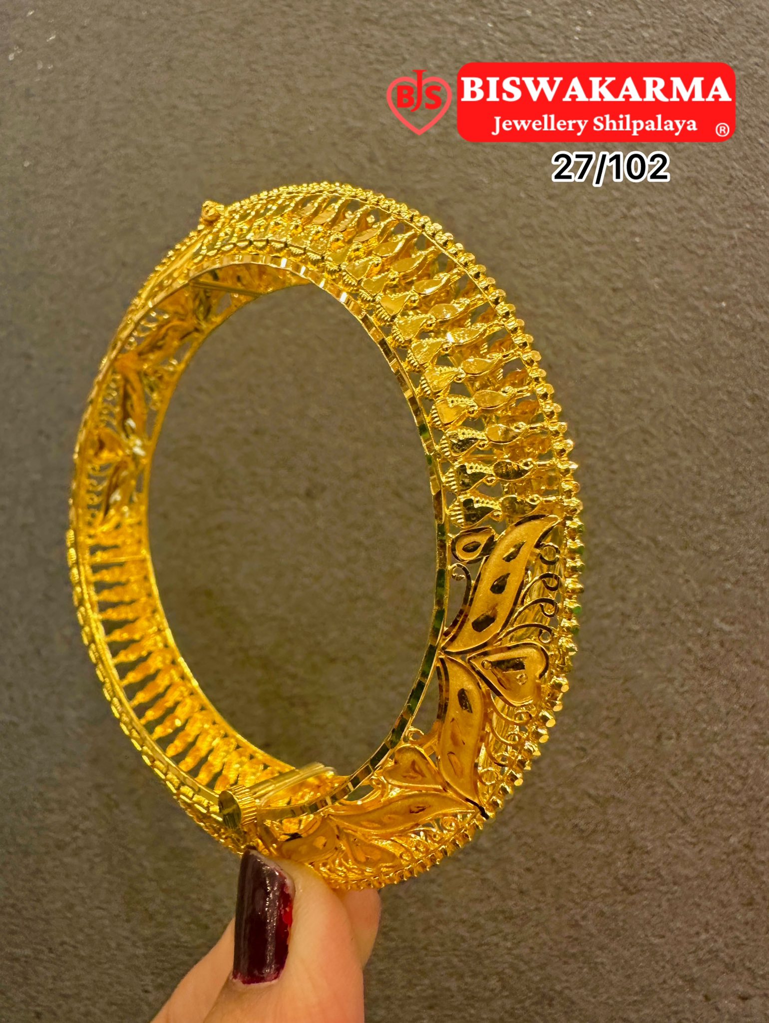 A stunning gold chur with petal curve design and fine filigree work, symbolizing beauty, grace, and timeless craftsmanship.