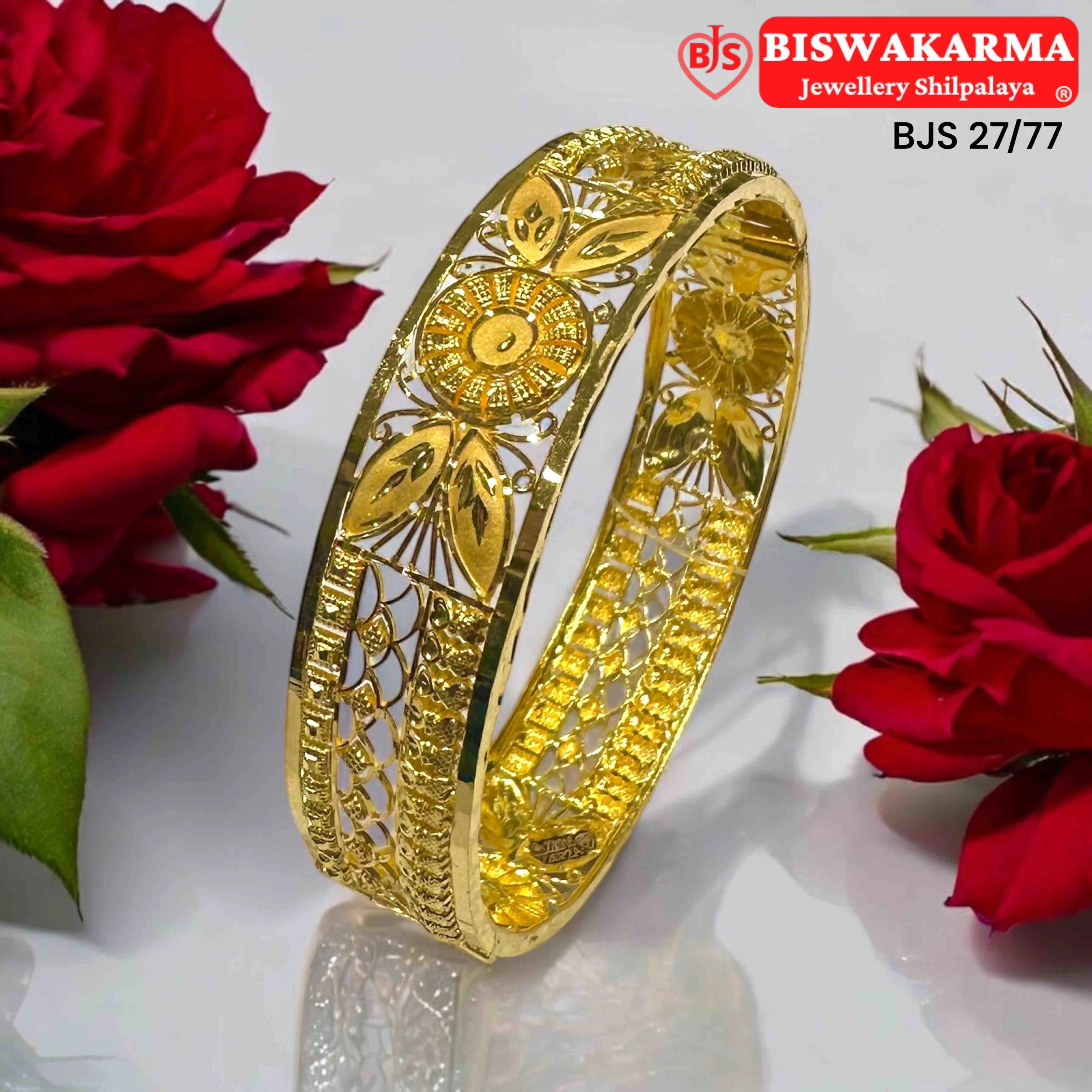 A radiant gold chur with sunburst floral design and open latticework, crafted to shine with festive elegance and royal artistry.
