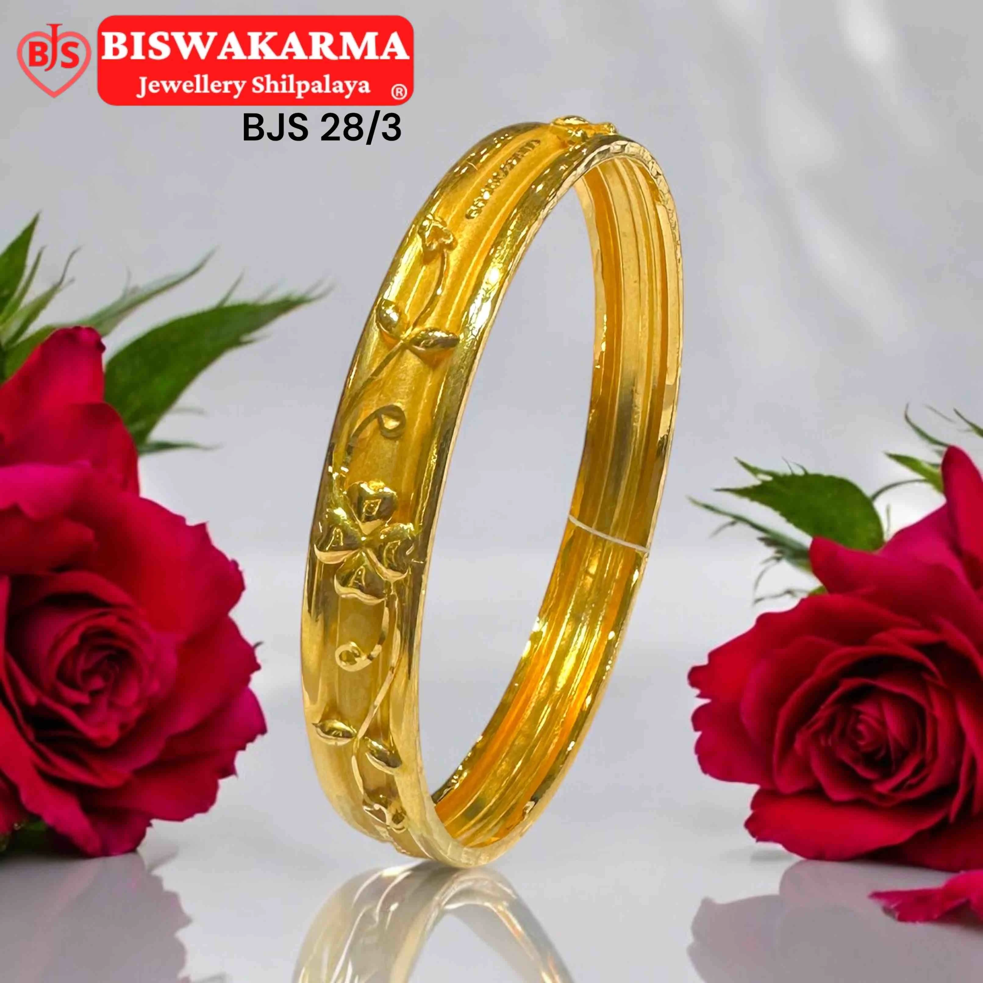 A sleek gold solid churi with glossy leaf engravings and smooth curves, designed for a touch of elegance and everyday traditional charm.