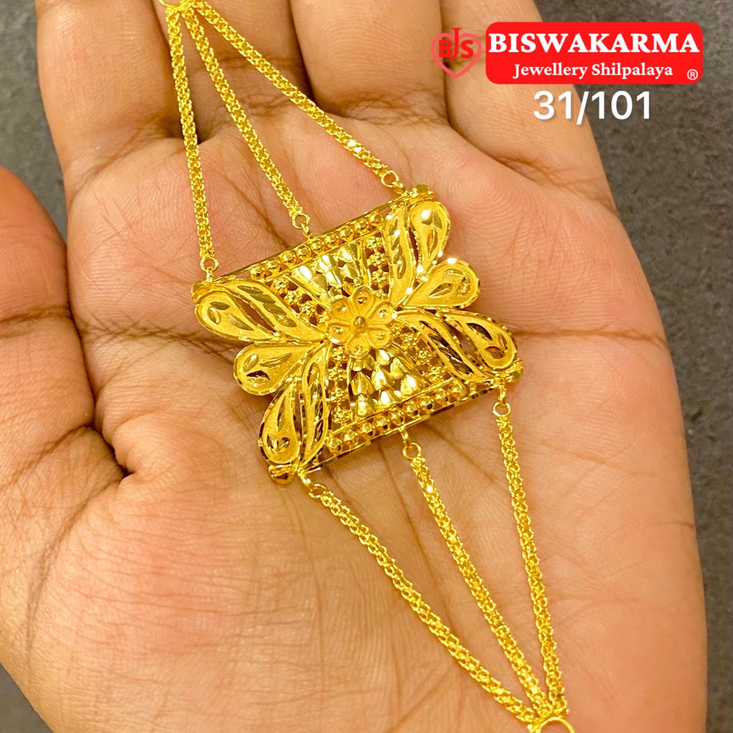 A regal gold mantasha featuring a square floral motif with fine filigree detailing, reflecting elegance, craftsmanship, and timeless traditional beauty.
