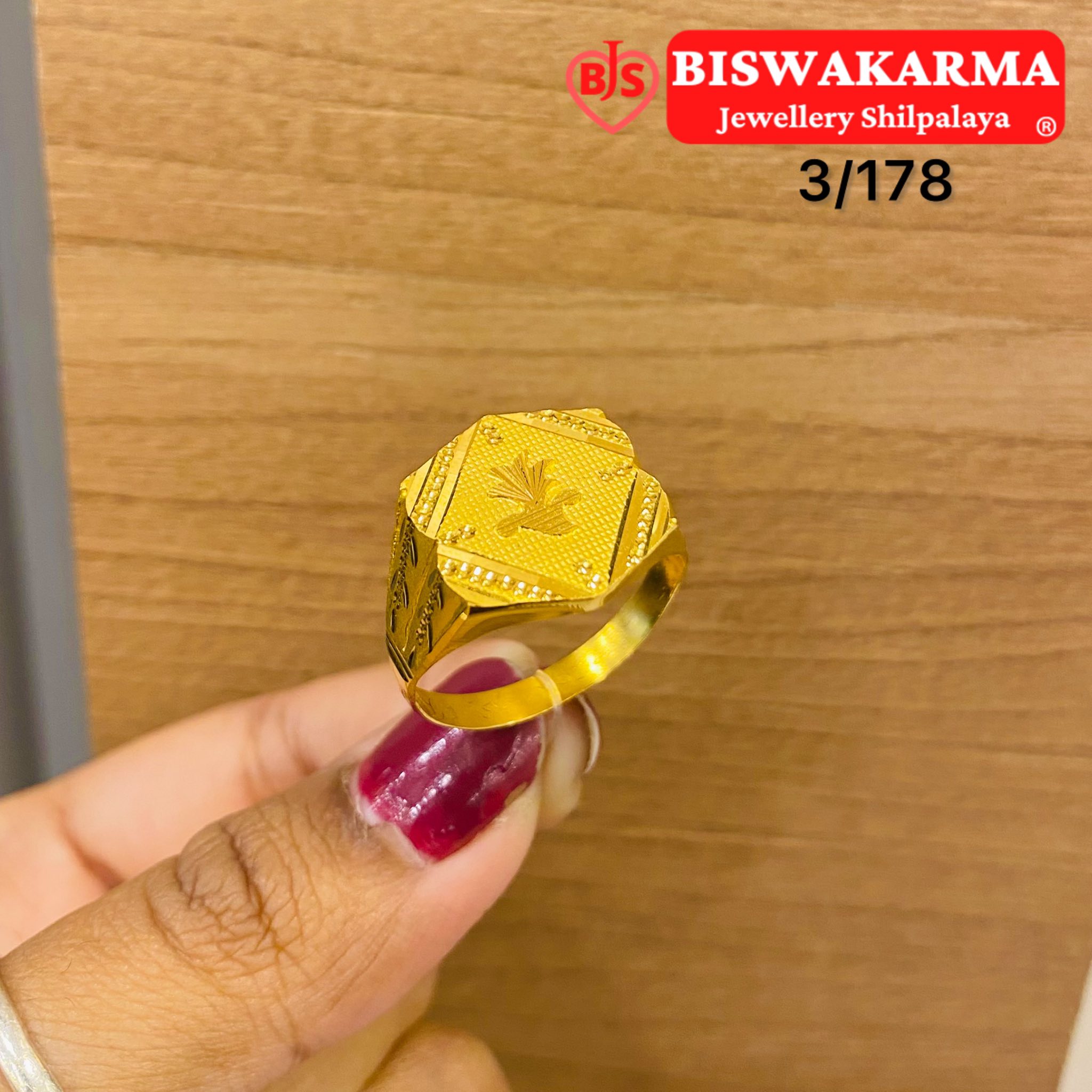 3/178 Hexagonal Leaf Engraved Gold Ring