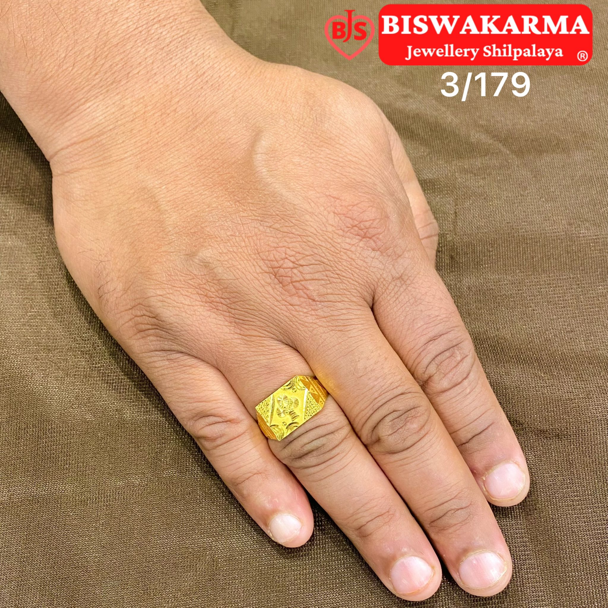 3/179 Geometric Floral Engraved Gold Ring
