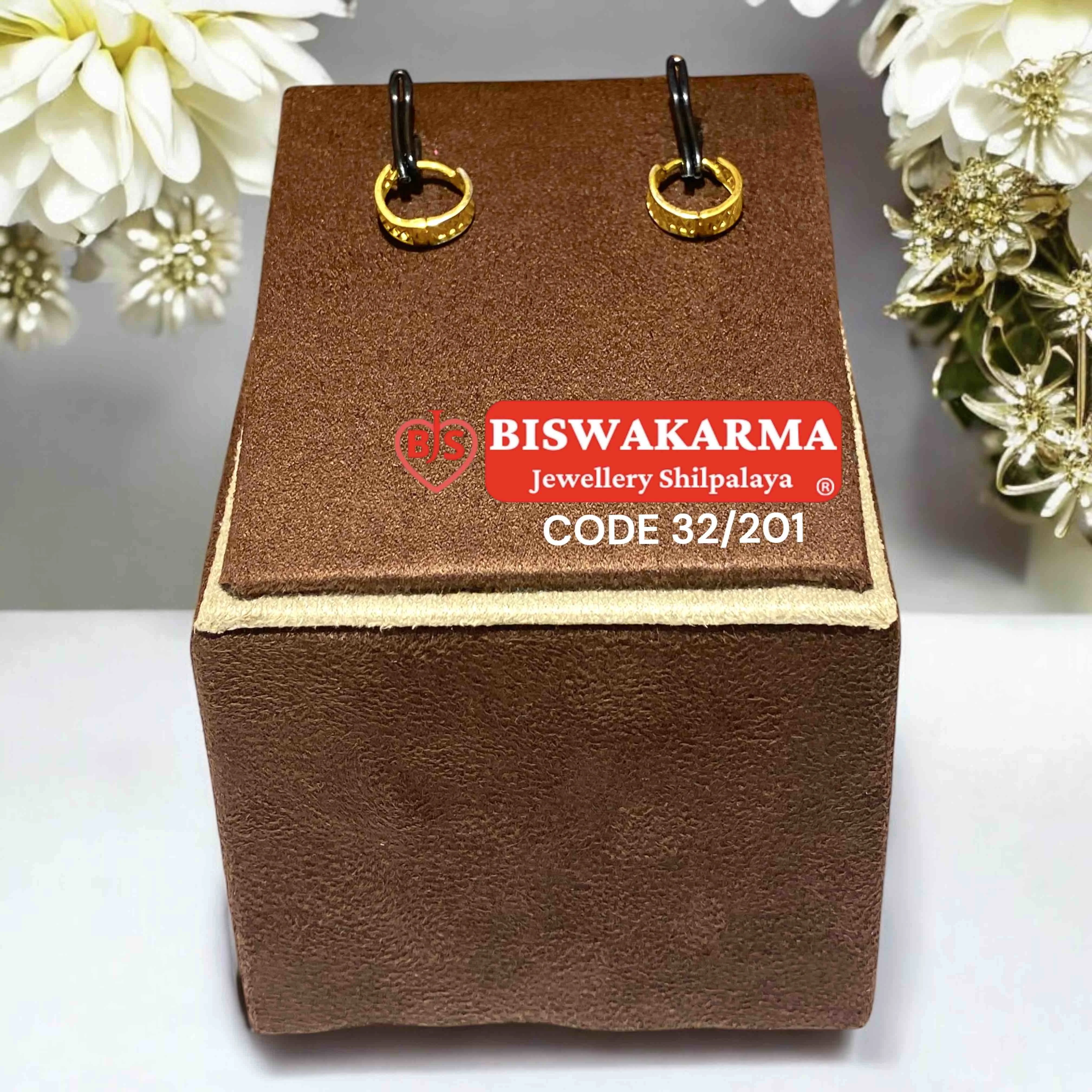 Classic round gold bali earrings with fine textured detailing, offering a subtle sparkle and timeless appeal for both daily and festive wear.