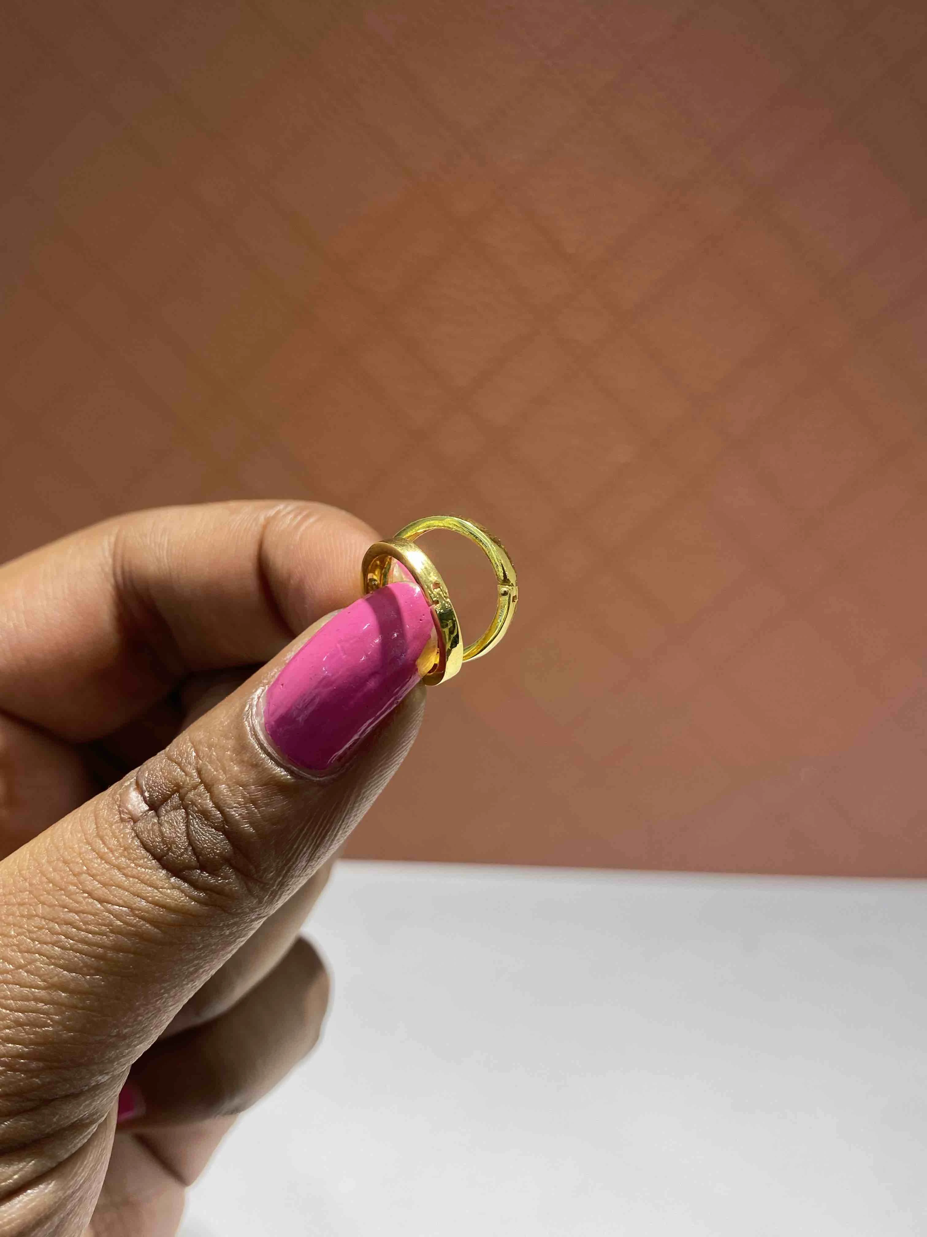 Elegant bold gold bali earrings with a smooth circular frame and bright polished finish, made to match both festive and daily wear styles.