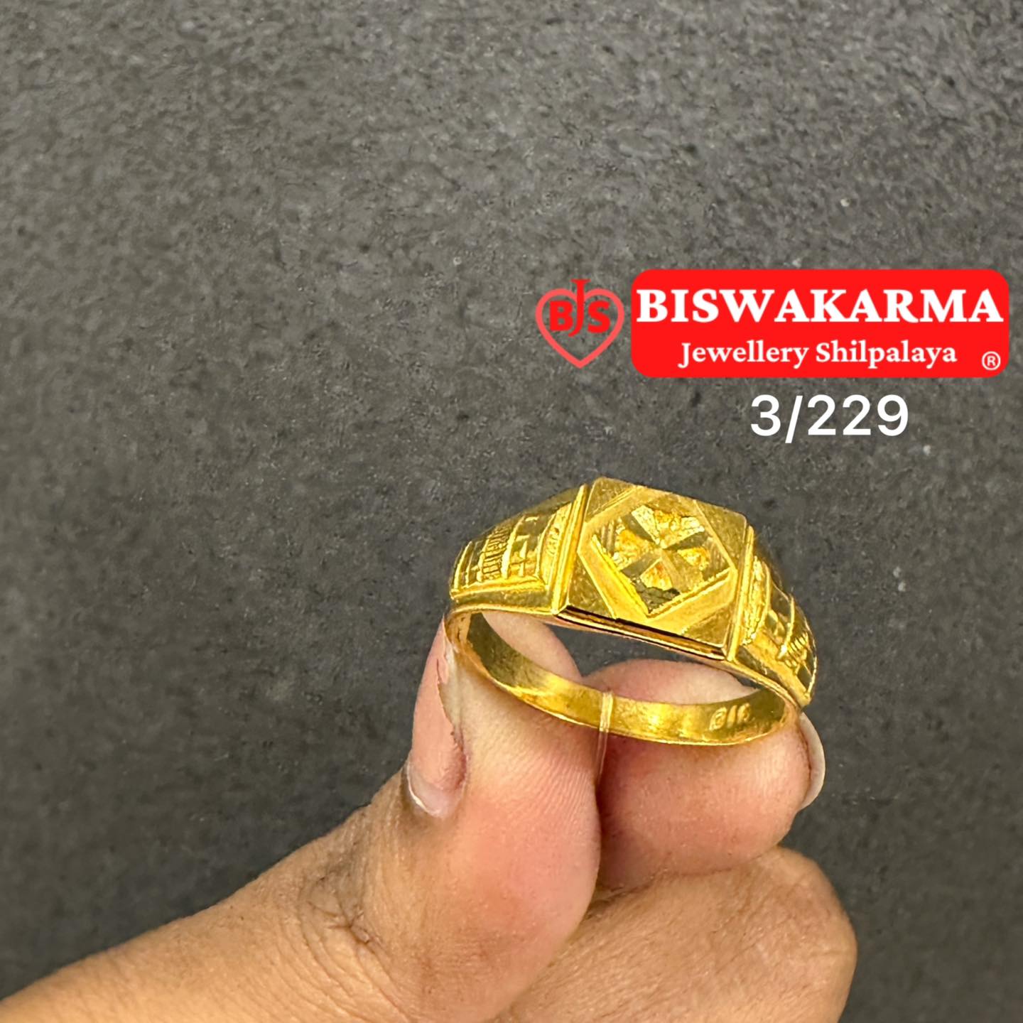 3/229 Geometric Patterned Gold Ring