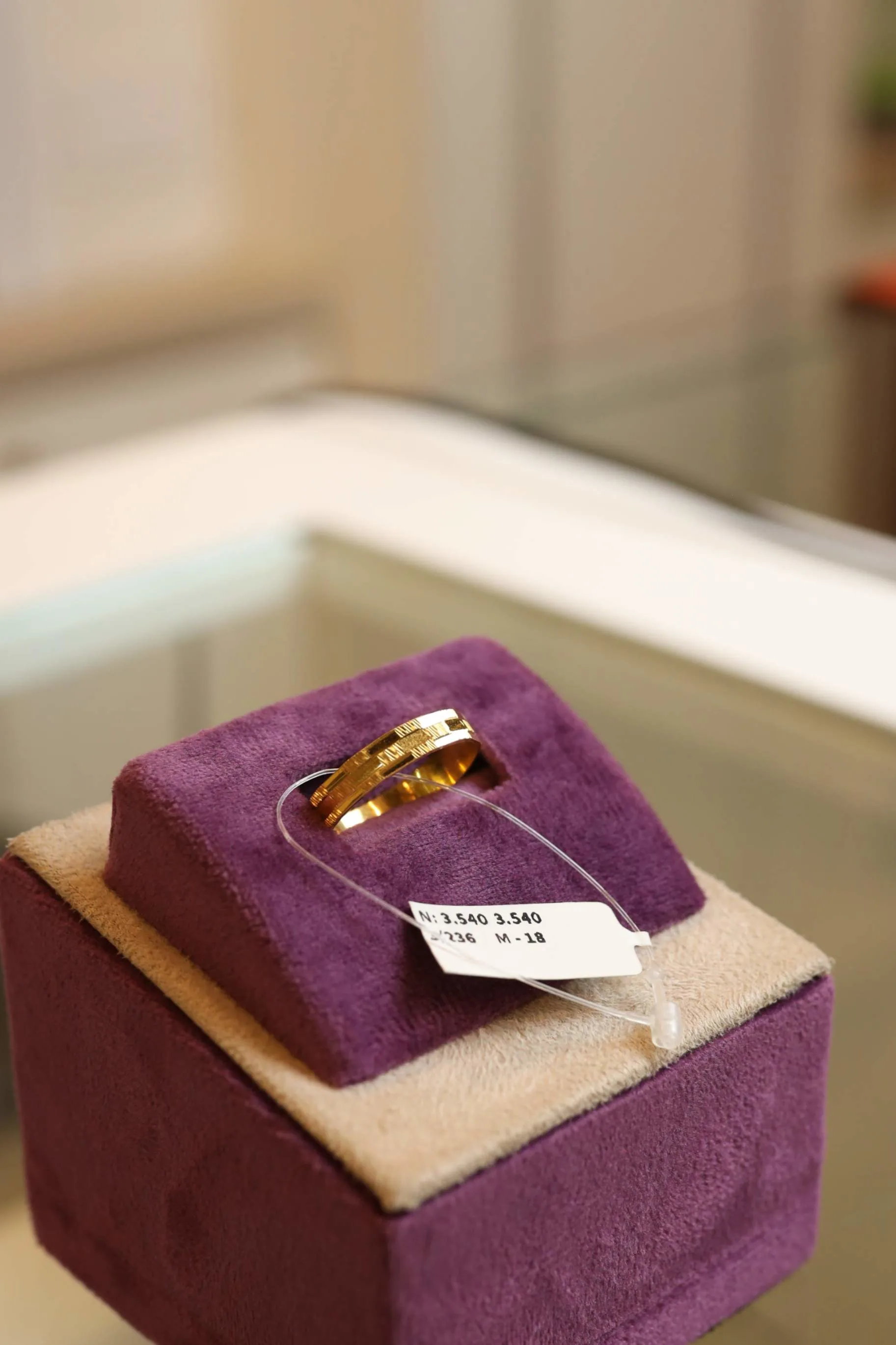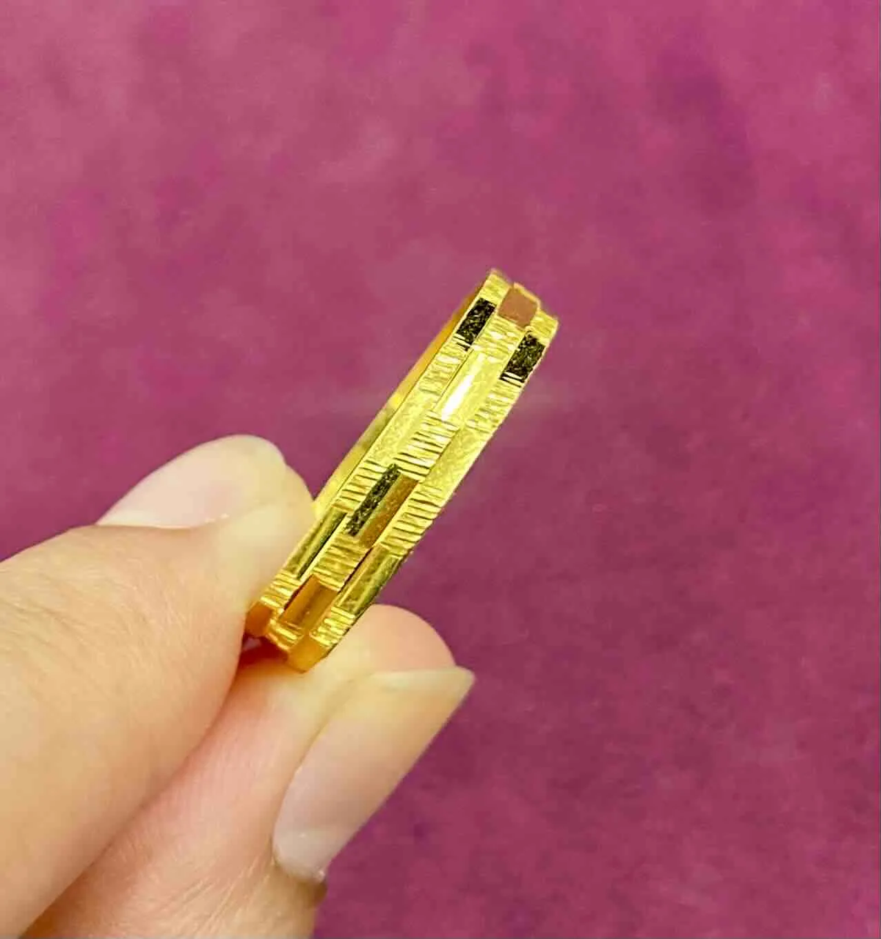 A striking gold thumb ring with alternating polished and matte grooves, adding bold depth and modern geometry to a timeless classic look.
