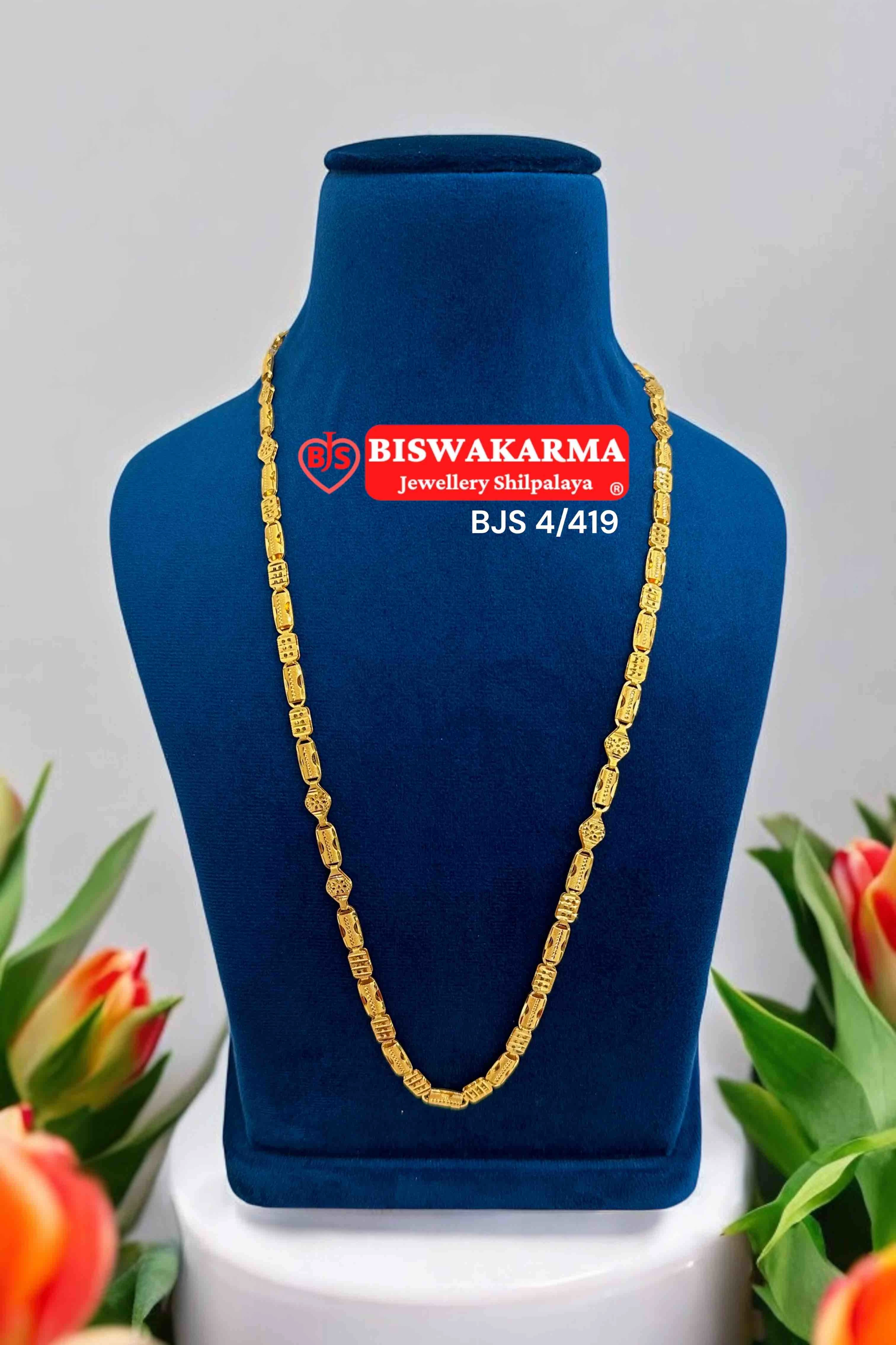 Crafted with patterned cylinder links, this gold chain gives a bold yet classic look, perfect for both daily wear and special occasions.