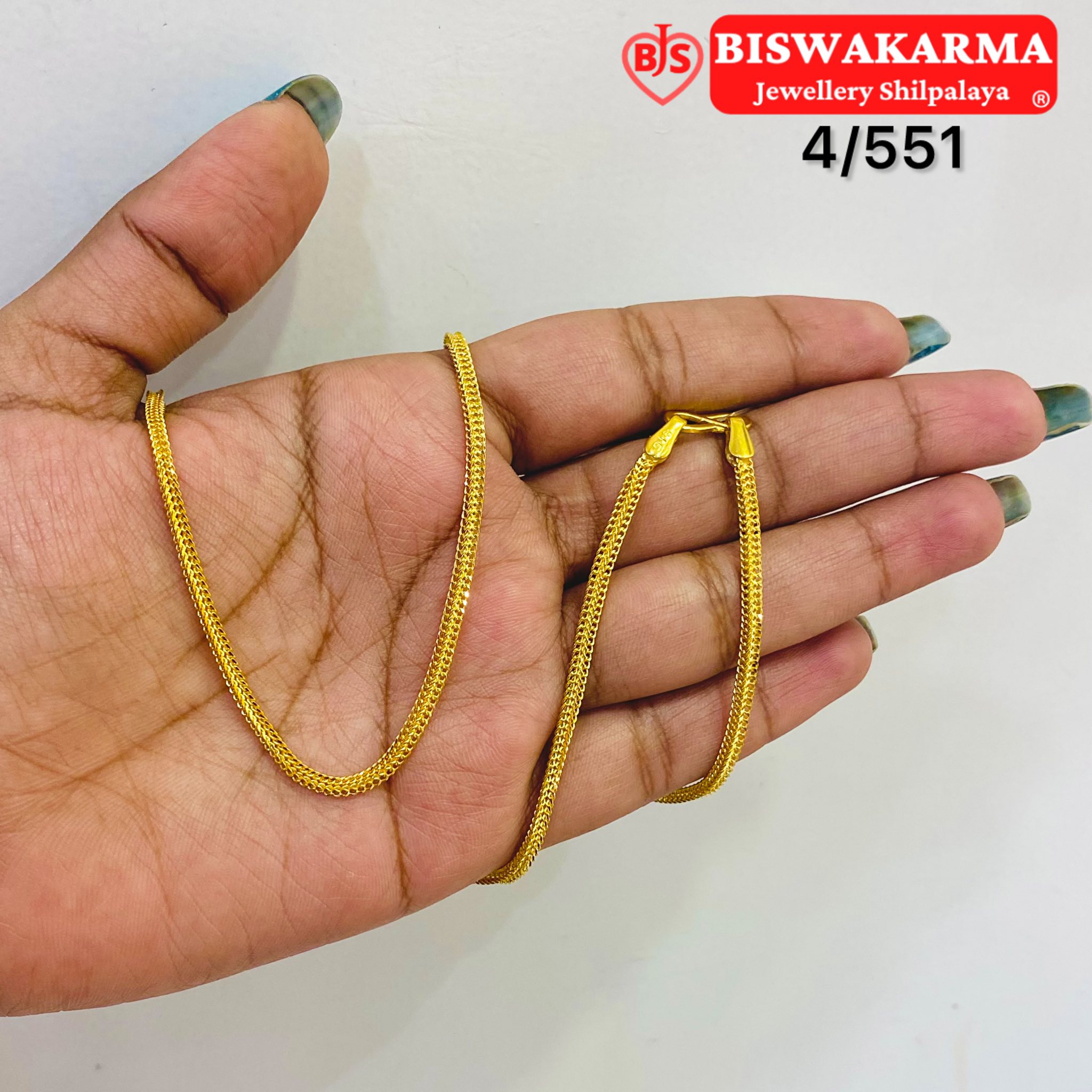 A timeless gold chain featuring a soft mesh weave for a smooth shine. Lightweight and elegant, perfect for daily wear or special occasions.
