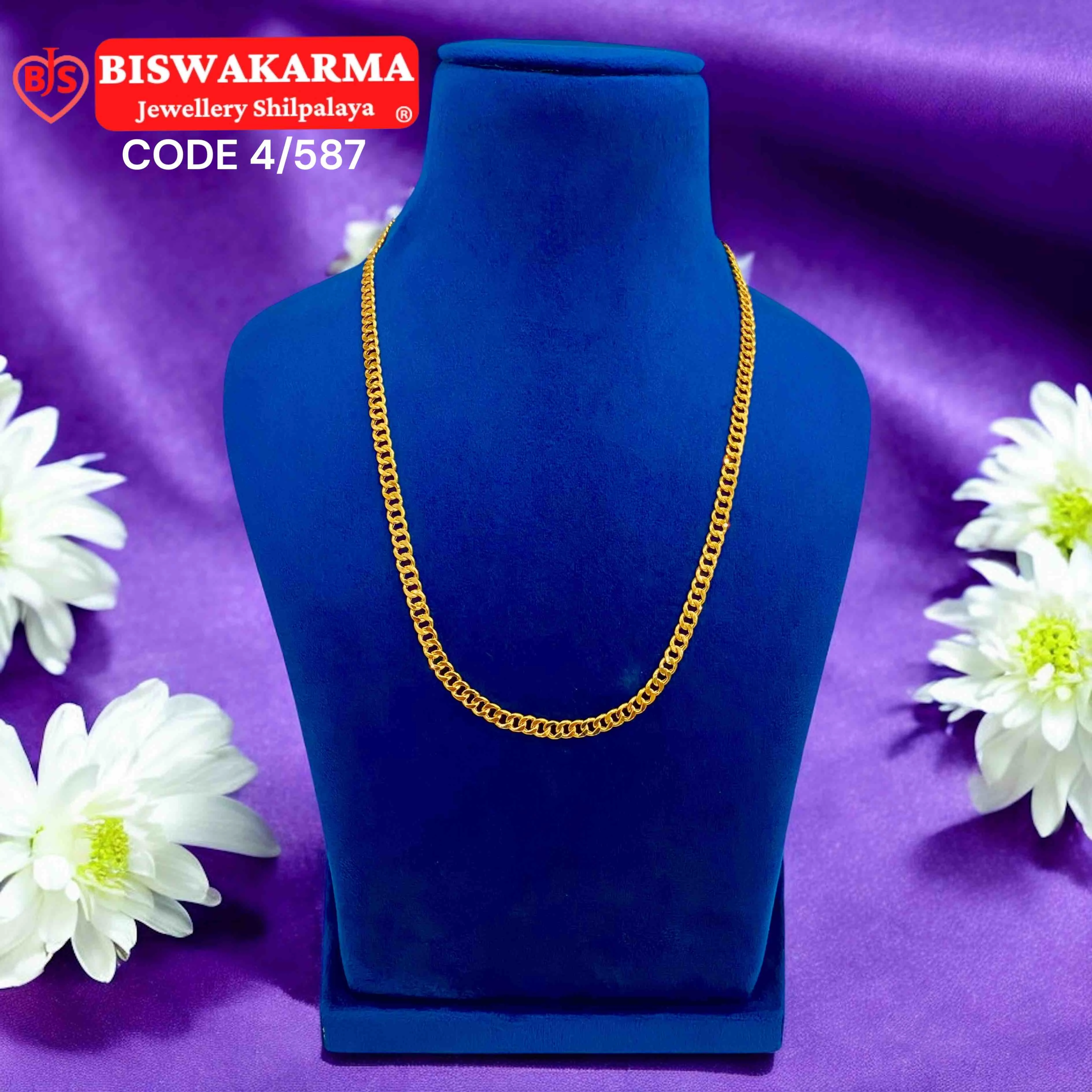 This gold chain stands out with its bold textured links and fine polish. A stylish pick that adds charm to any outfit, from casual to festive wear.