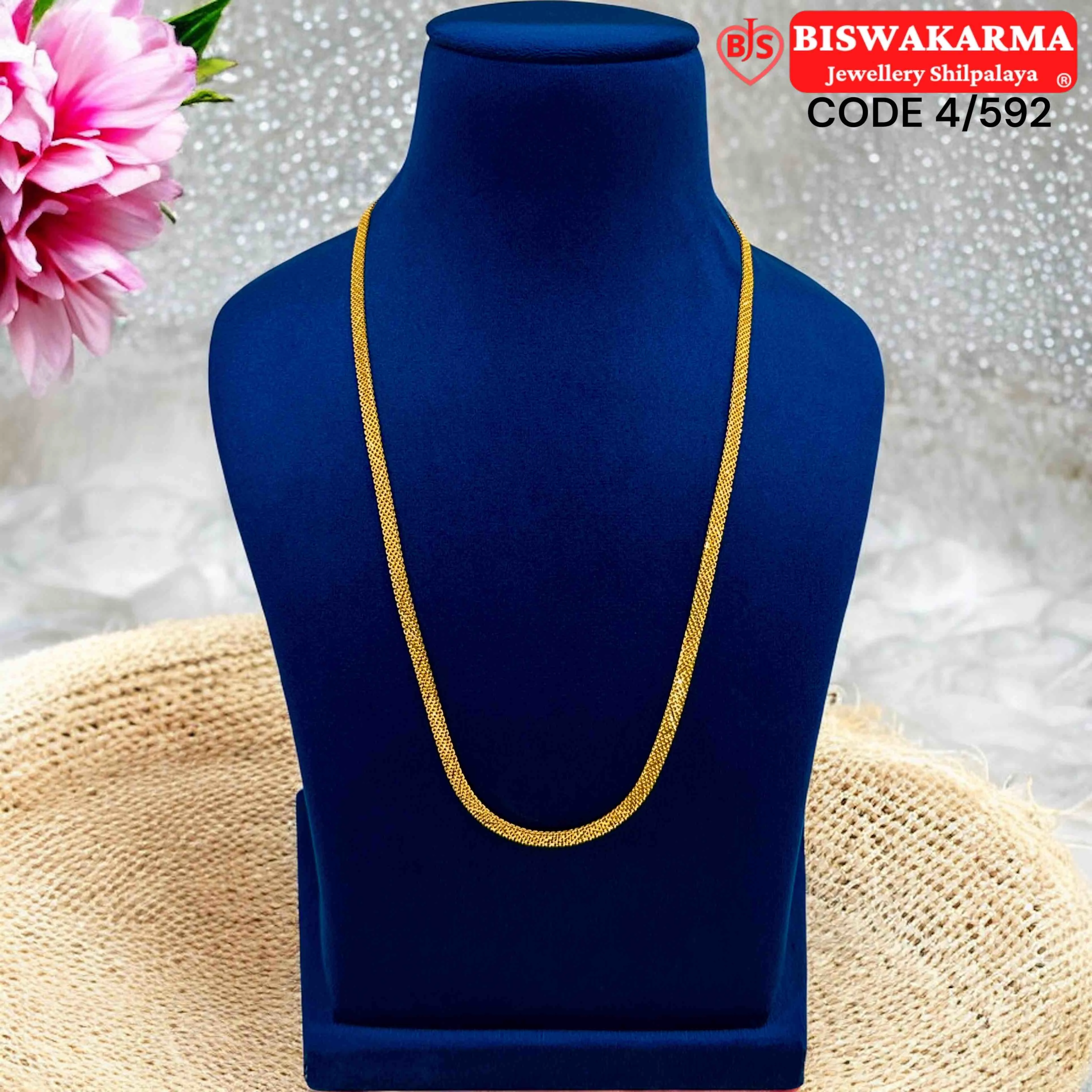 A sleek and elegant gold chain designed for everyday wear. Its smooth texture and timeless style make it perfect for both modern and traditional looks.