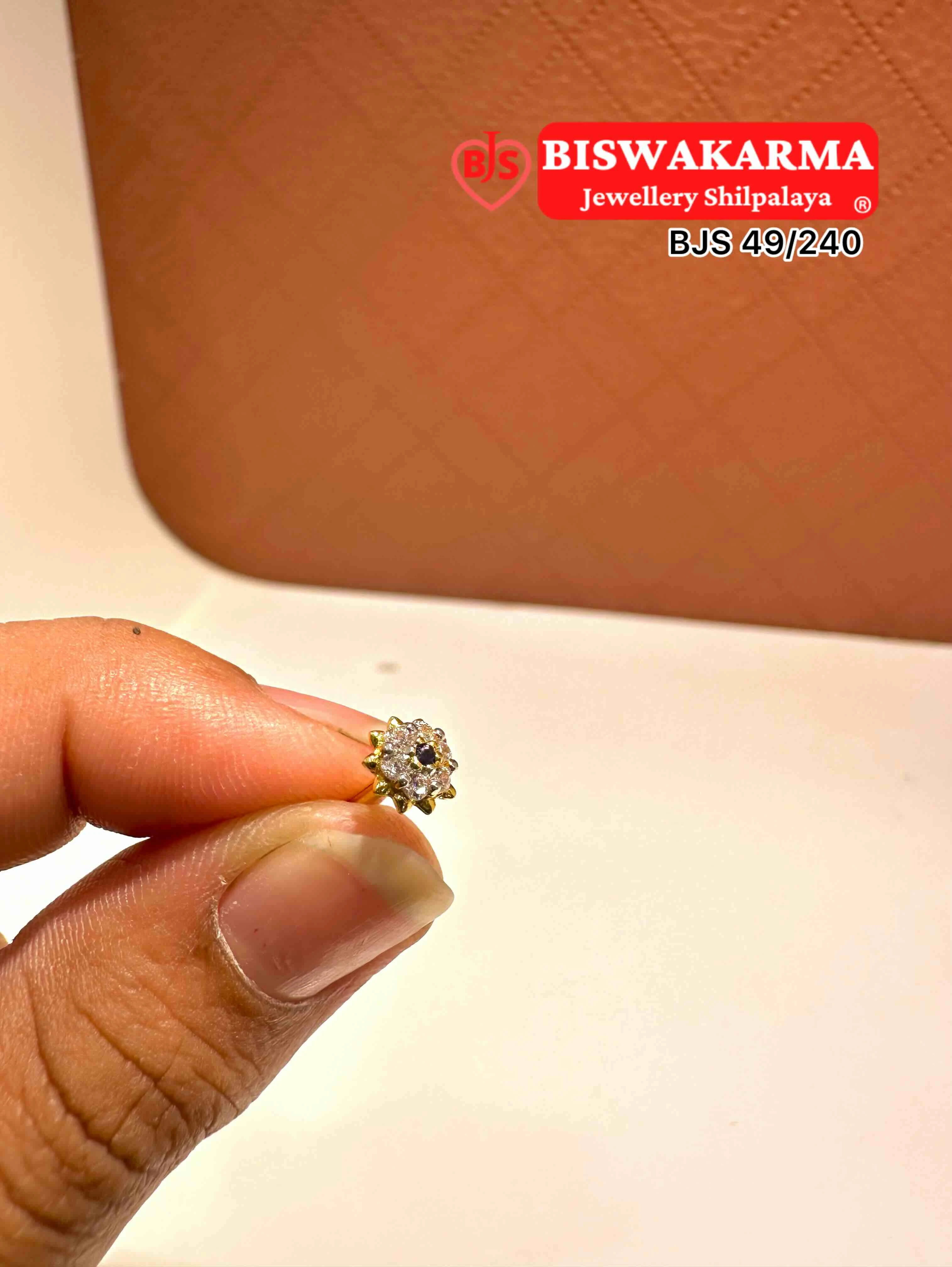 A neat round stud shaped like a tiny blooming flower, made with bright white stones. Its clean cuts, soft shine, and tidy gold frame give it a warm, sweet charm.