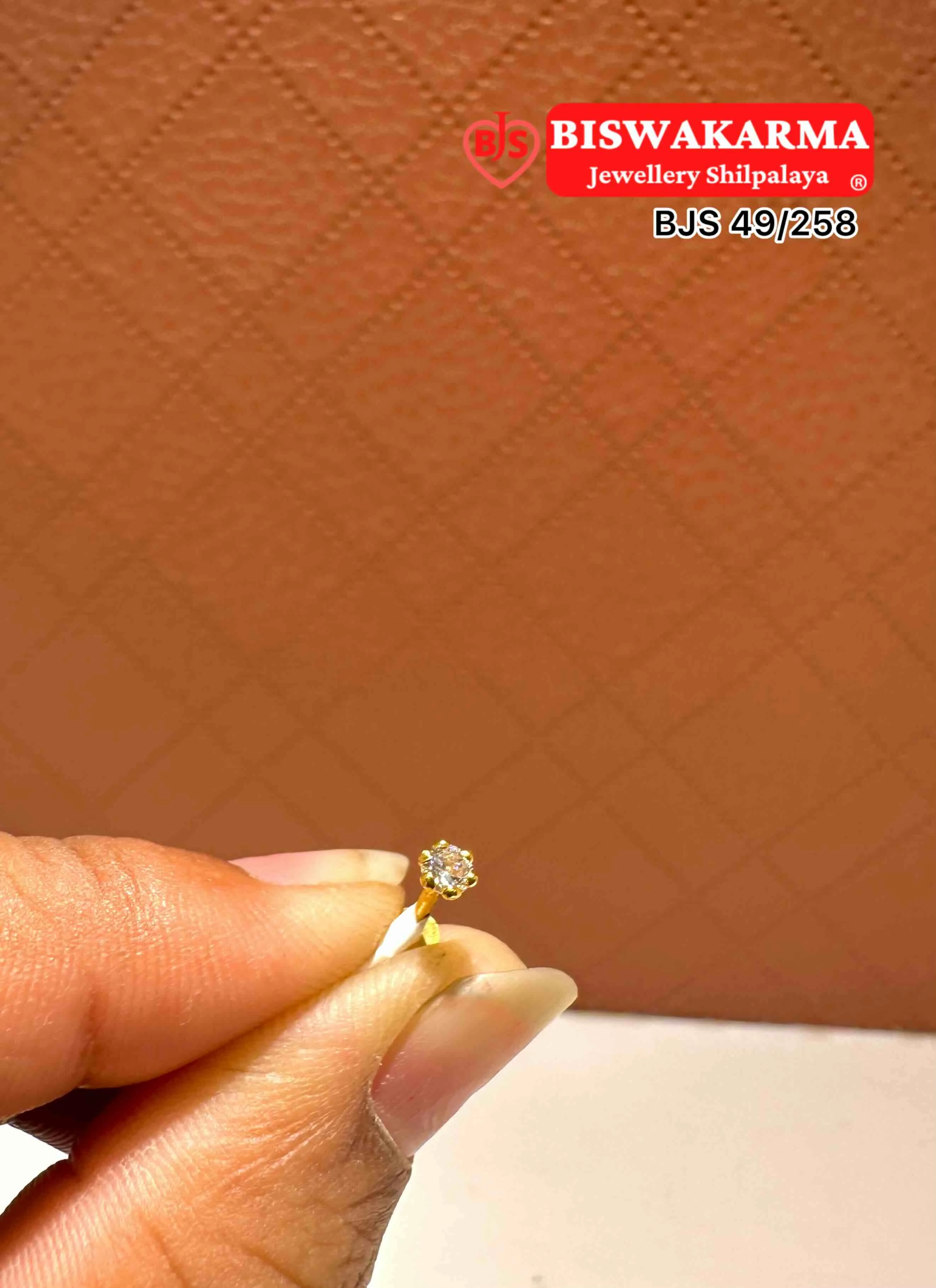 A tiny cluster of clear stones rests in a smooth gold base. The neat round shape and soft sparkle give it a sweet, gentle charm that feels quietly heartwarming.