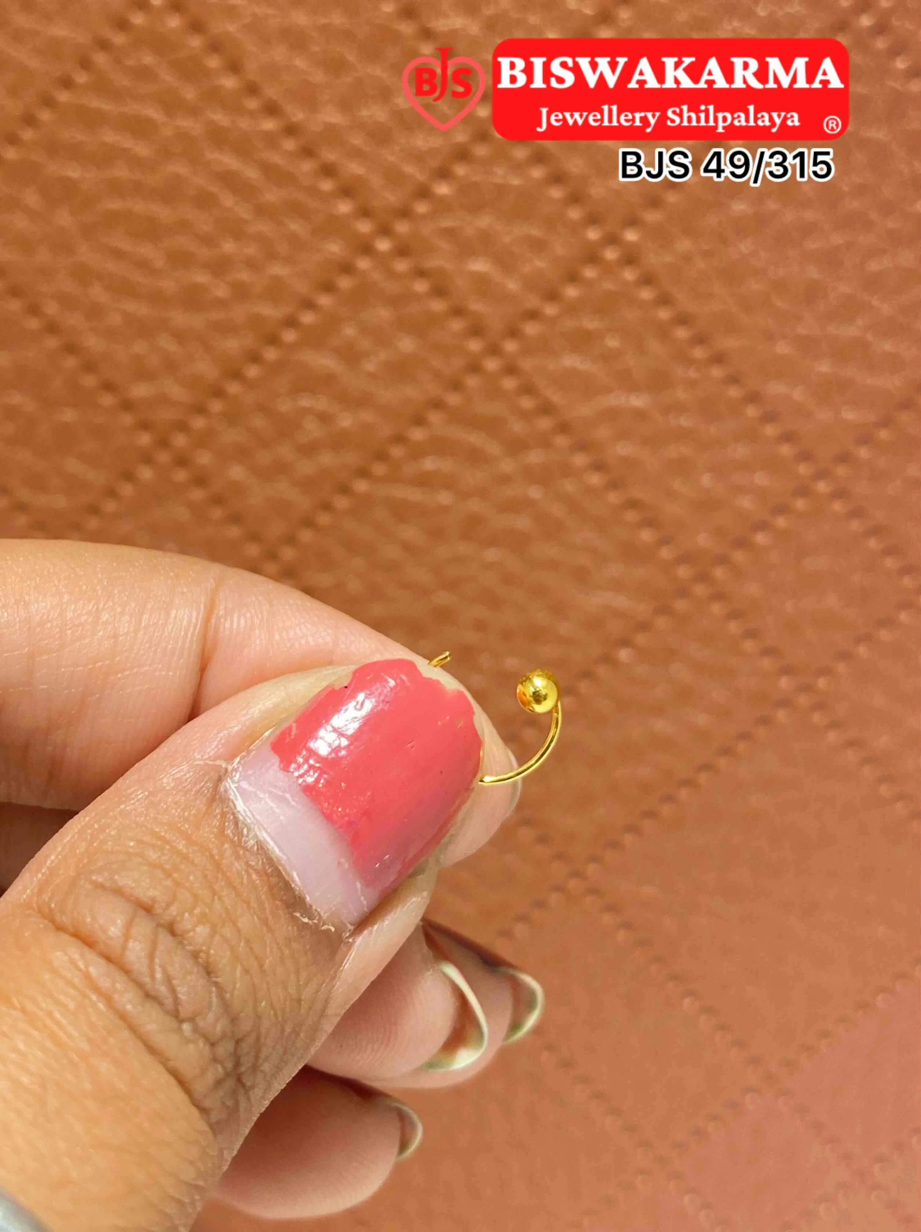 A tiny smooth gold bead sitting on a slim curved stem. Its clean round shape and soft shine give the little piece a warm, simple charm that feels sweet and natural.