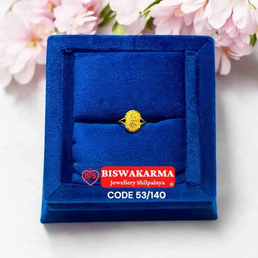 This gold baby ring has an oval top with a tiny star engraved at the center. Its smooth shine and soft curves make it gentle and charming.