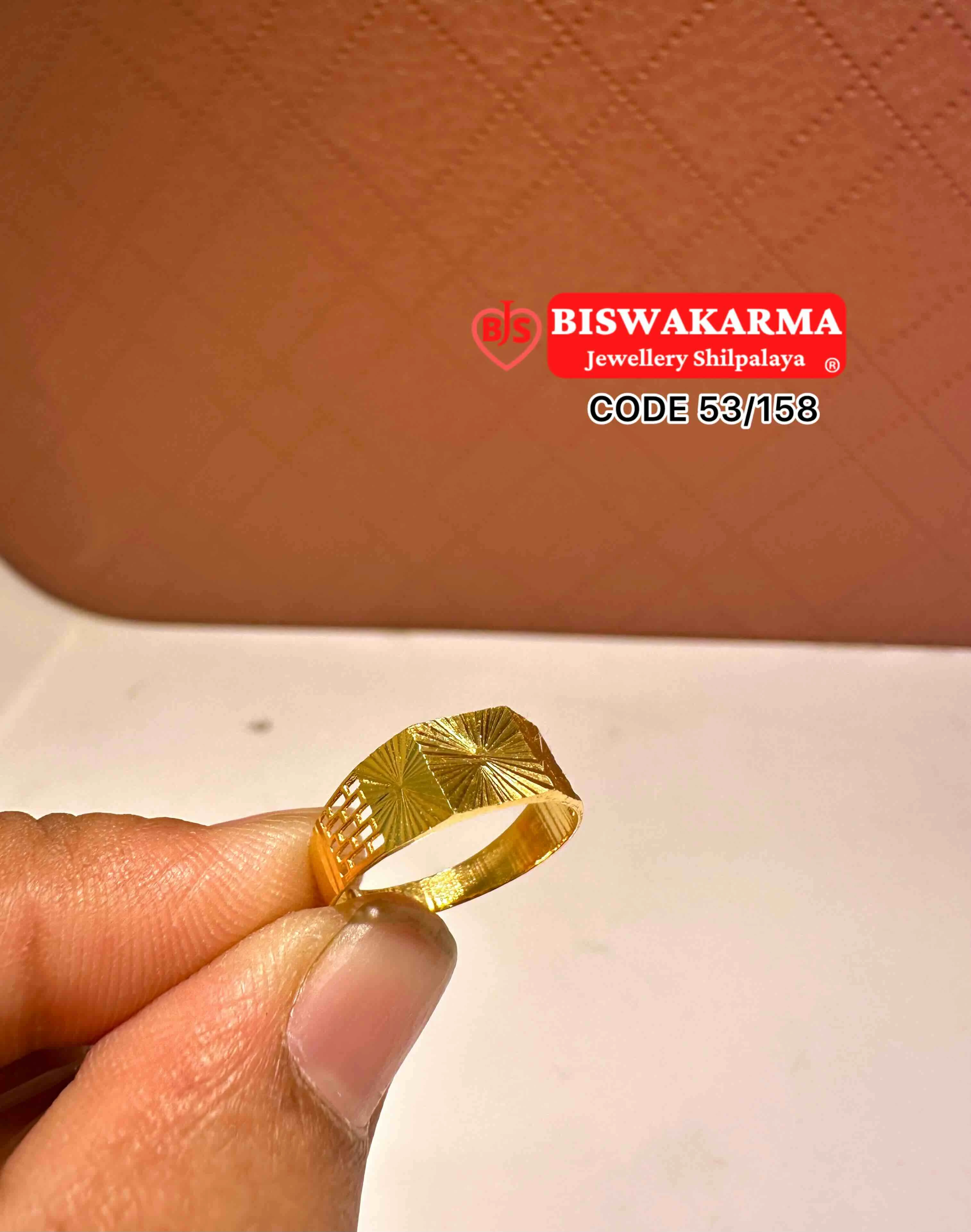 This gold baby ring has a radiant sunburst pattern on top. Its smooth shine and neat cuts give it a bright, cheerful, and classic look.