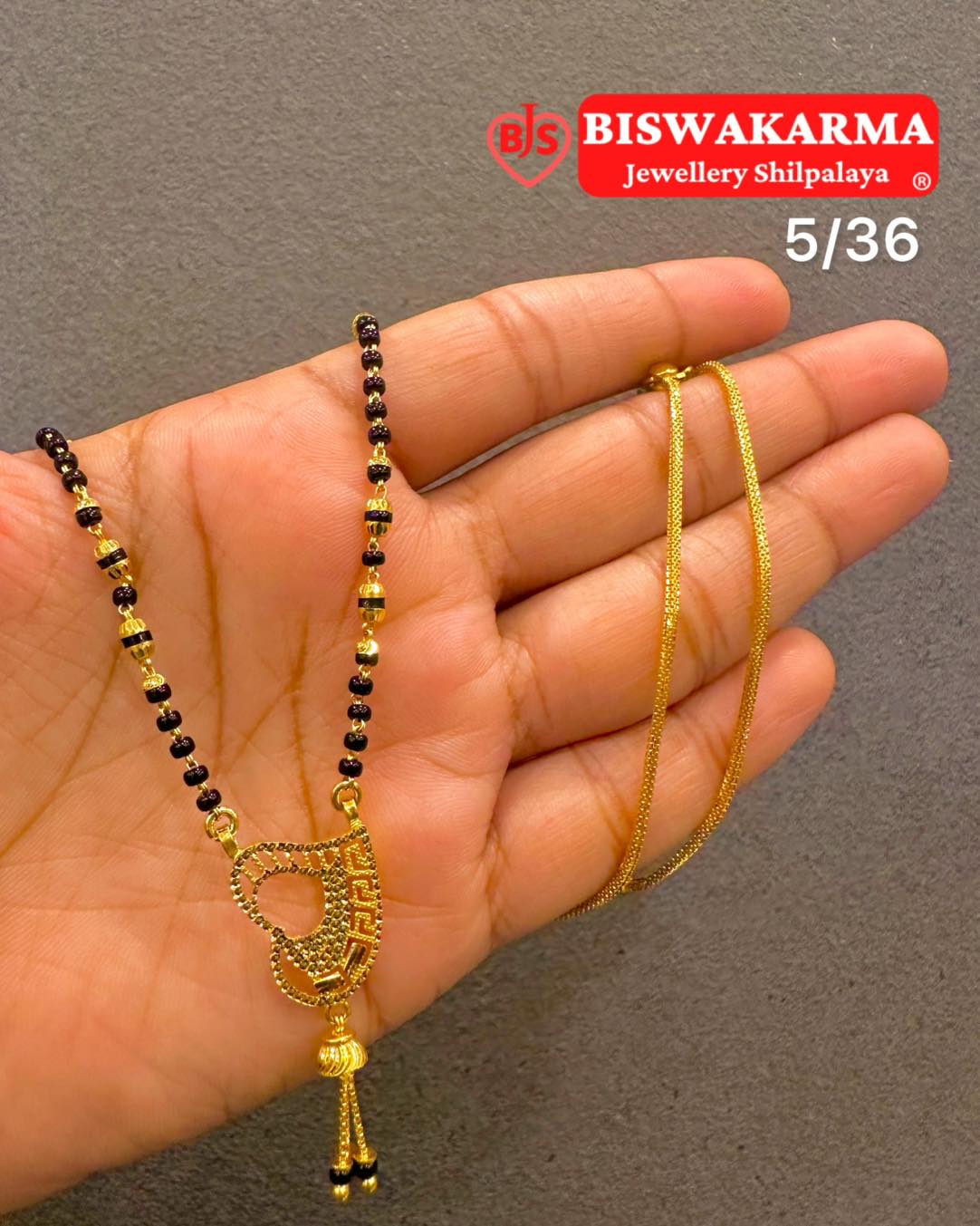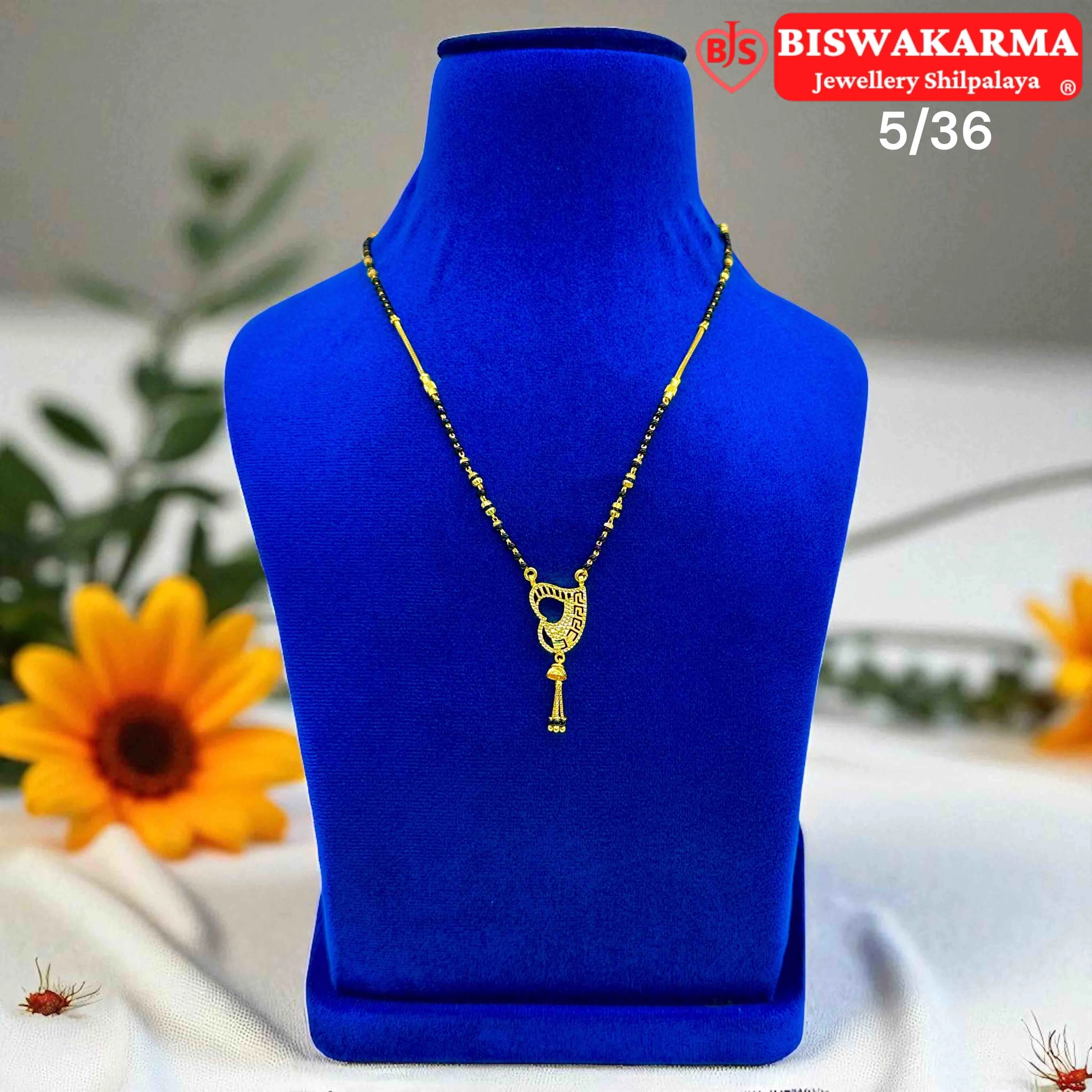 A stylish lyre-inspired pendant graces this gold mangalsutra, blending artistic elegance with the purity of traditional craftsmanship.
