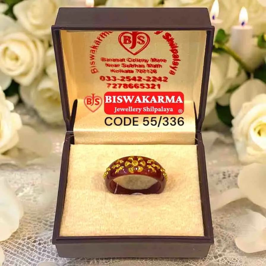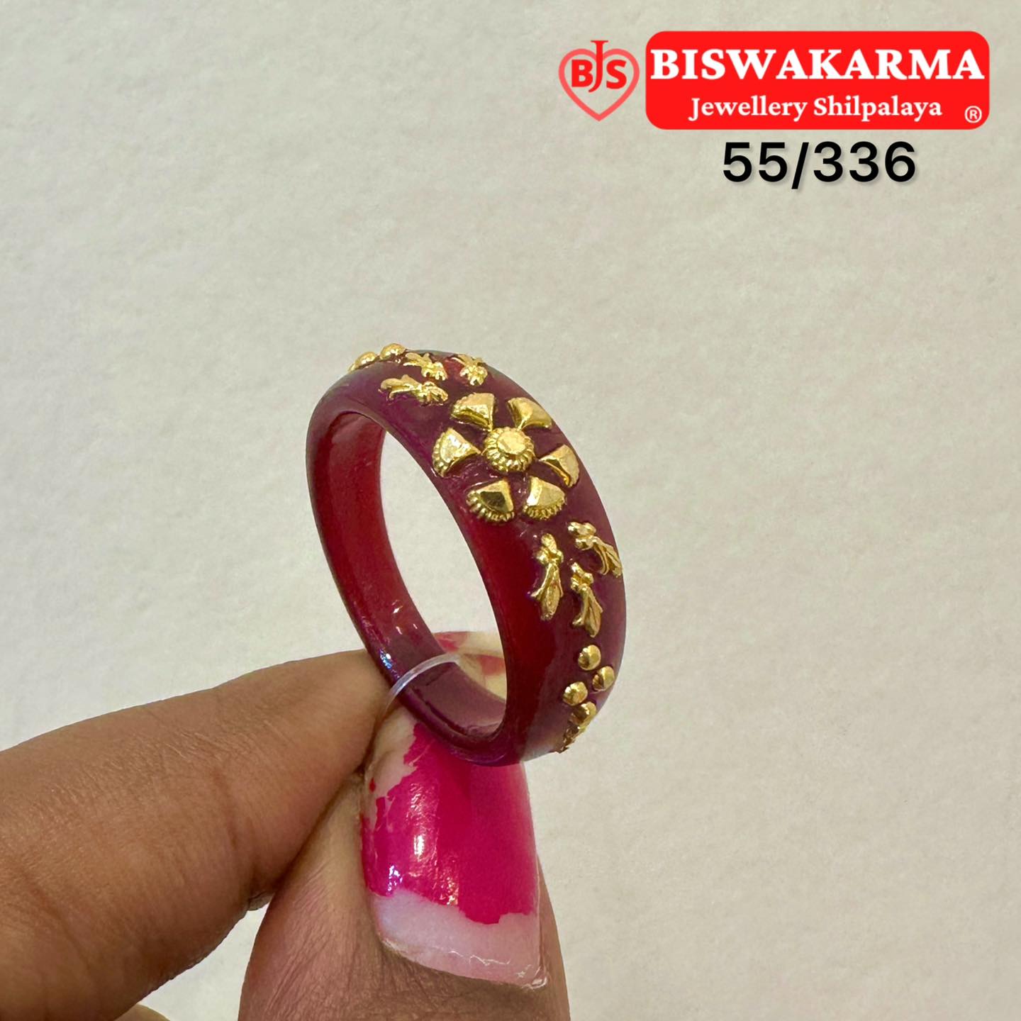 A rich maroon pola ring with golden floral detailing — classic, elegant, and perfect for festive wear with a touch of tradition.
