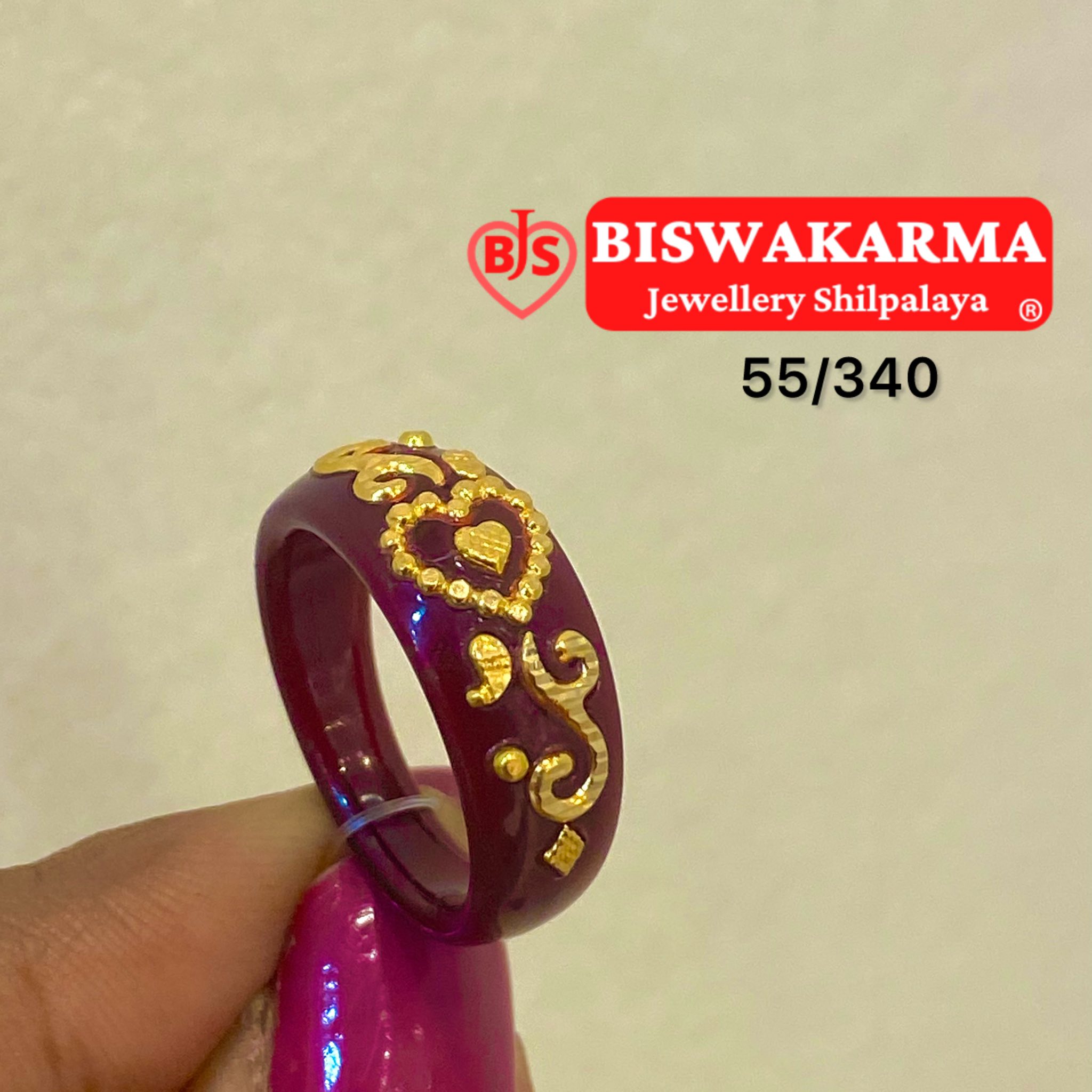 A rich maroon pola ring with elegant golden swirl designs — timeless, festive, and perfect for adding traditional grace.