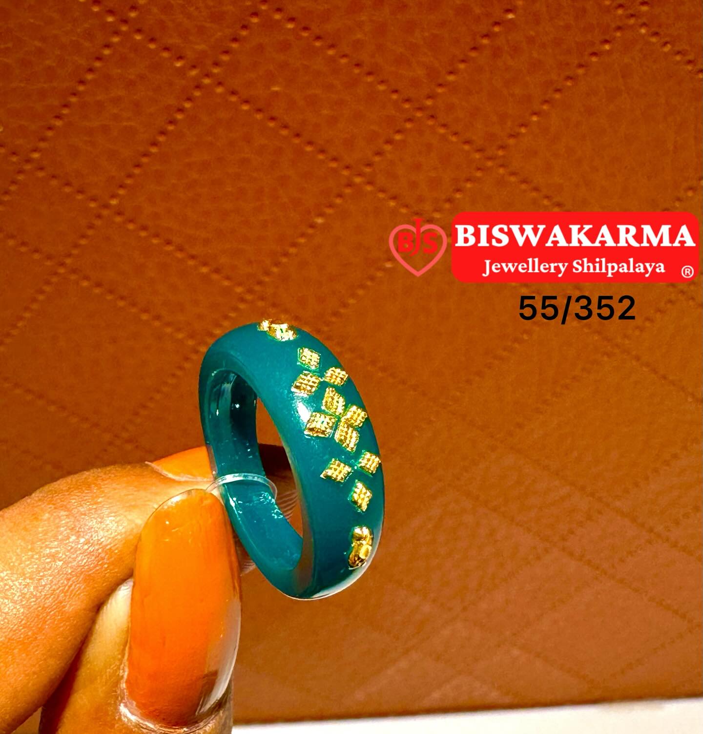A rich green pola ring with golden leaf patterns — elegant, festive, and perfect for adding a traditional touch to any celebration.