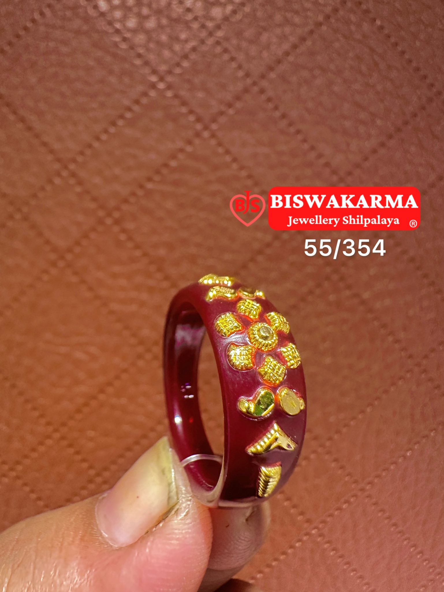 A graceful maroon pola ring with golden floral art — rich in tradition, glowing in beauty, and perfect for festive celebrations.