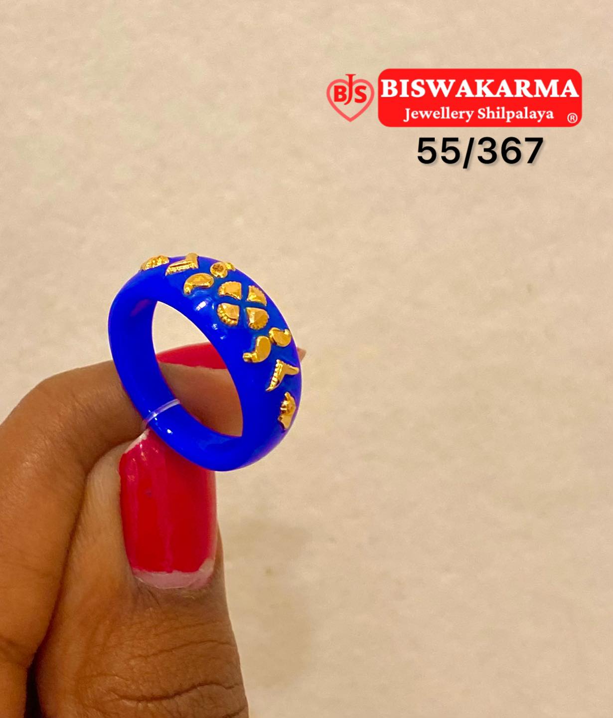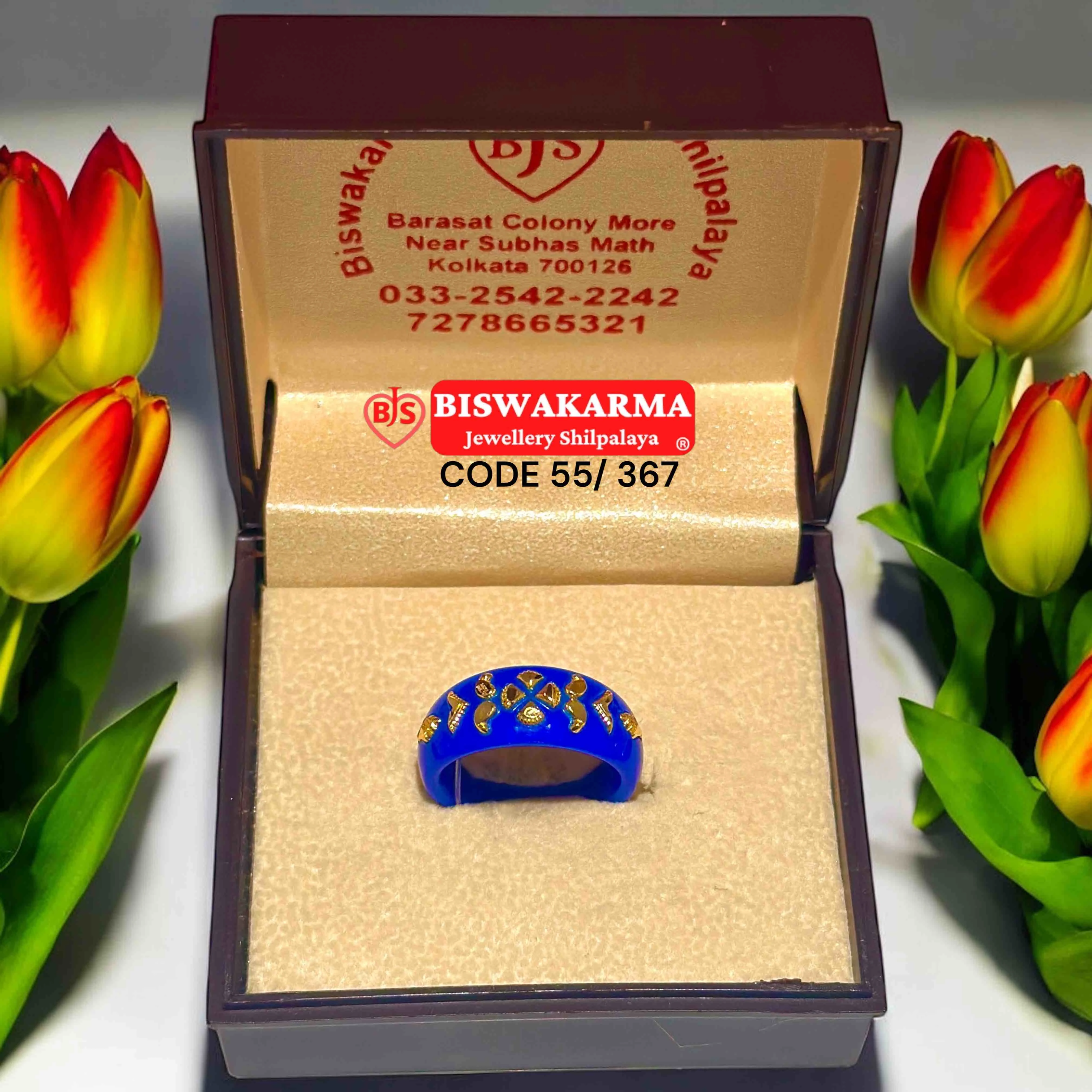 A stunning blue pola ring with golden floral art bold, elegant, and deeply traditional, perfect for adding color to festive attire.