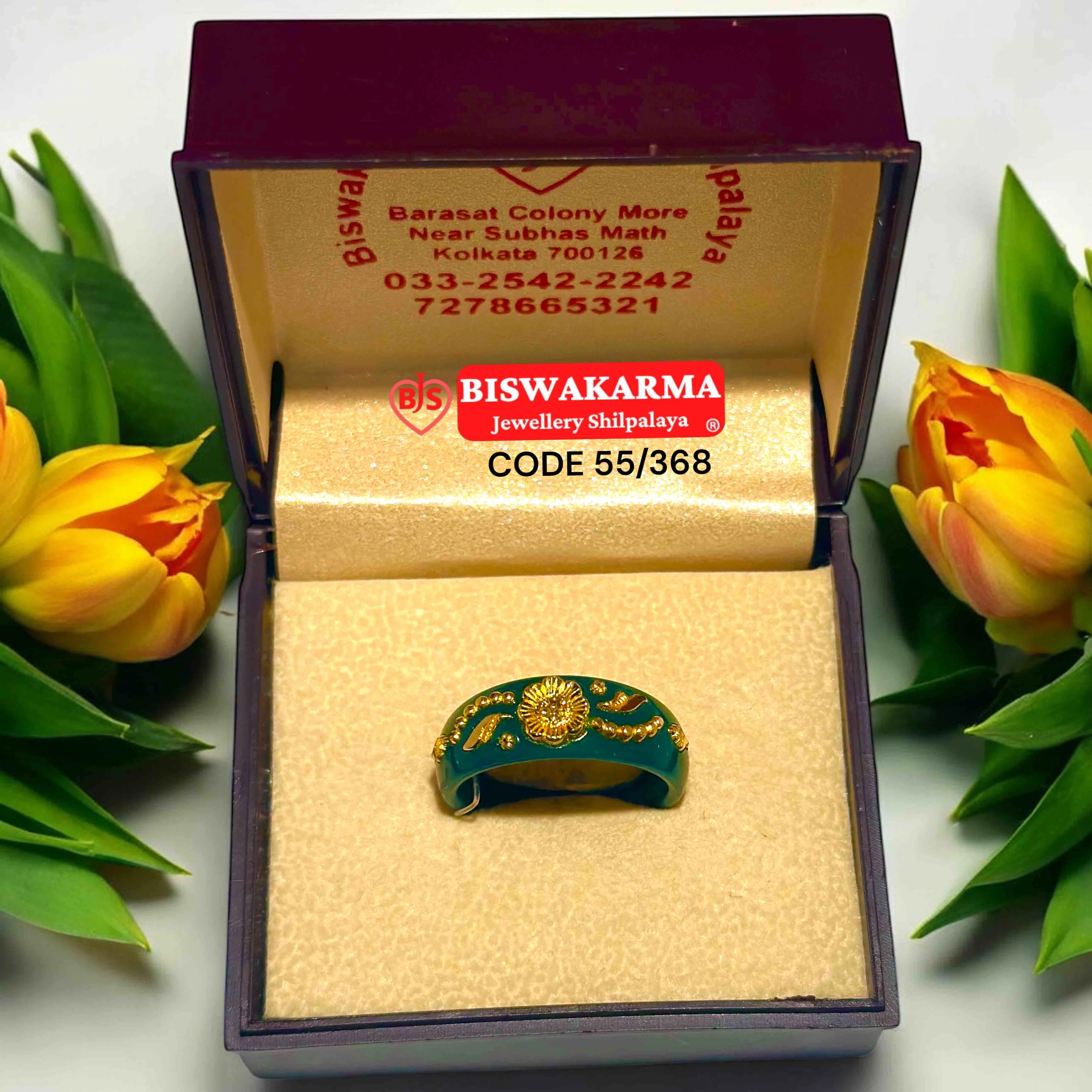 A deep green pola ring with golden floral accents — elegant, cultural, and perfect for festive wear with a touch of royal grace.