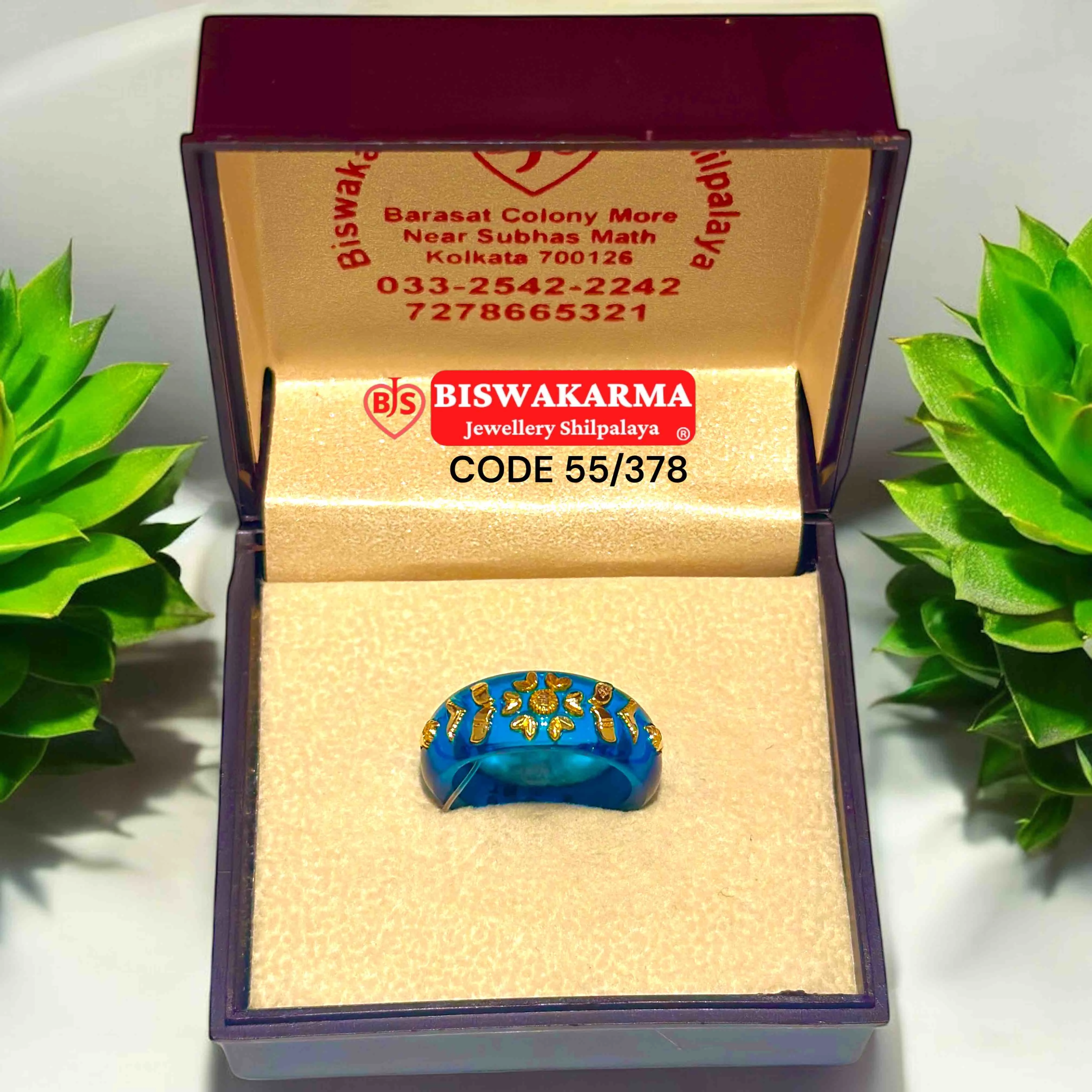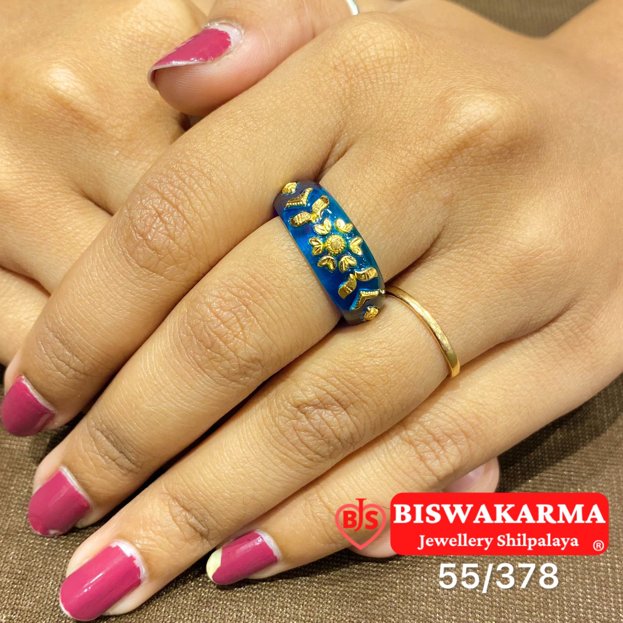 A stunning blue pola ring with golden floral accents — bright, elegant, and perfect for bringing festive sparkle to any celebration.