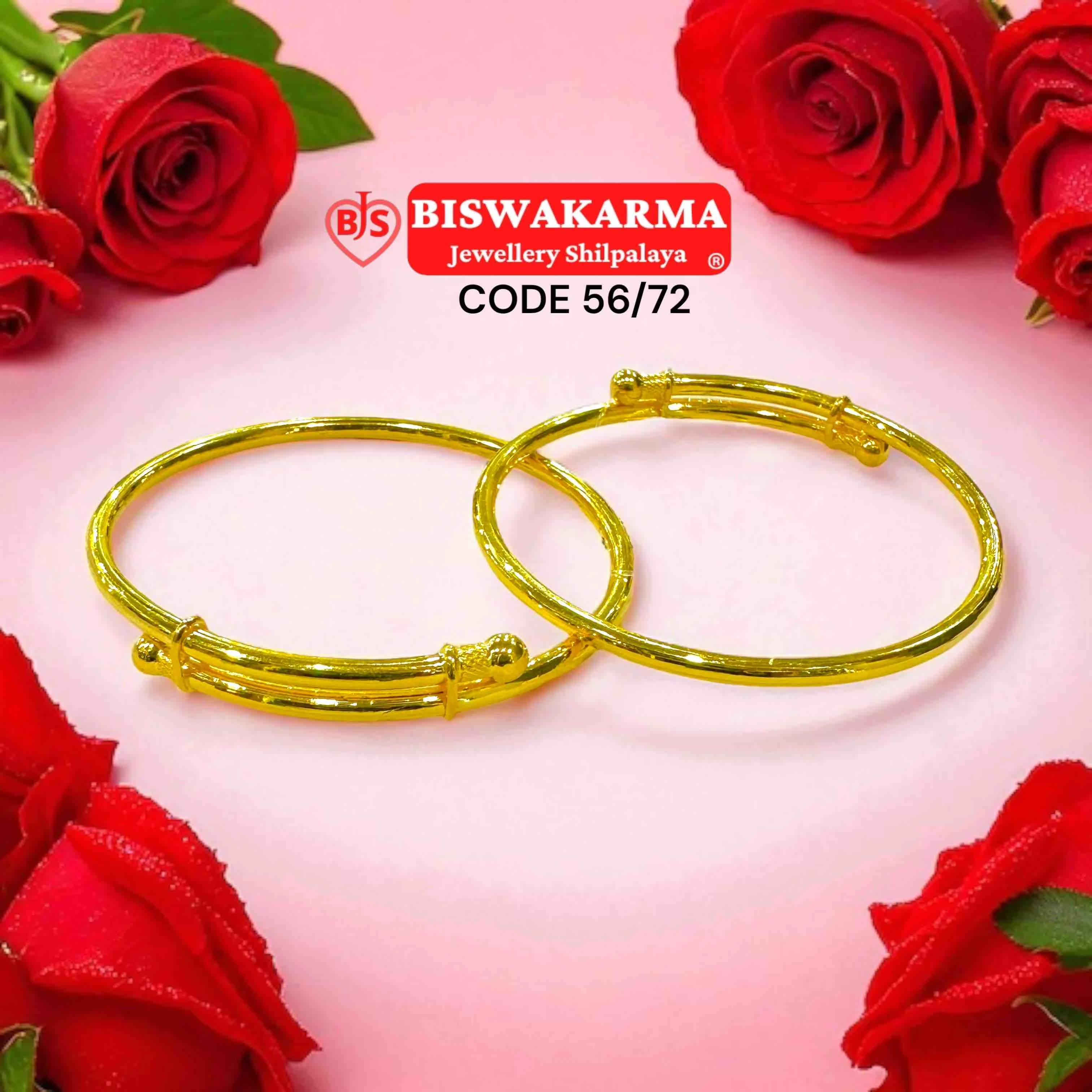 A clean round bangle with a smooth glossy band and tiny ridge details near the clasp. The simple shine and soft flow give it a warm, gentle charm.