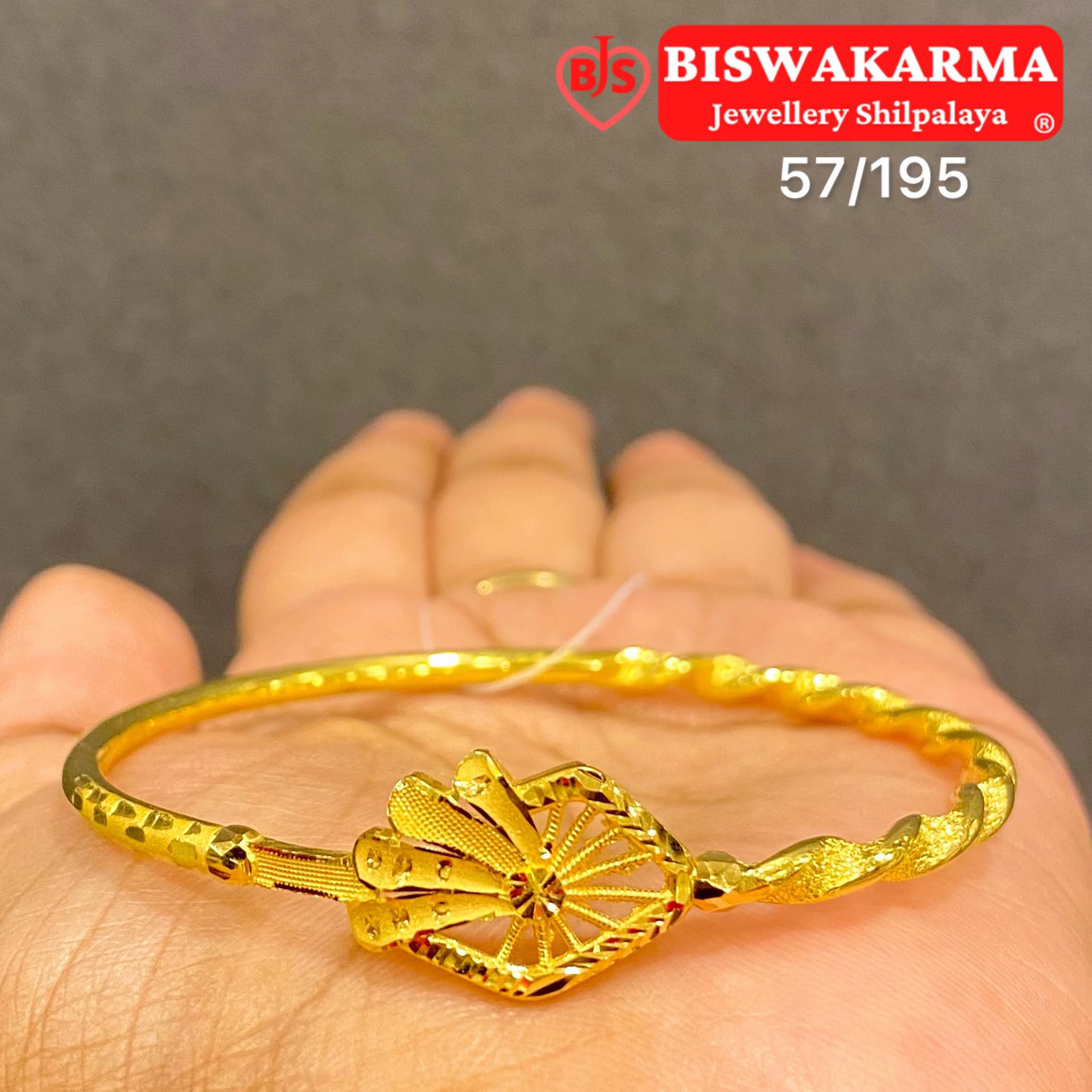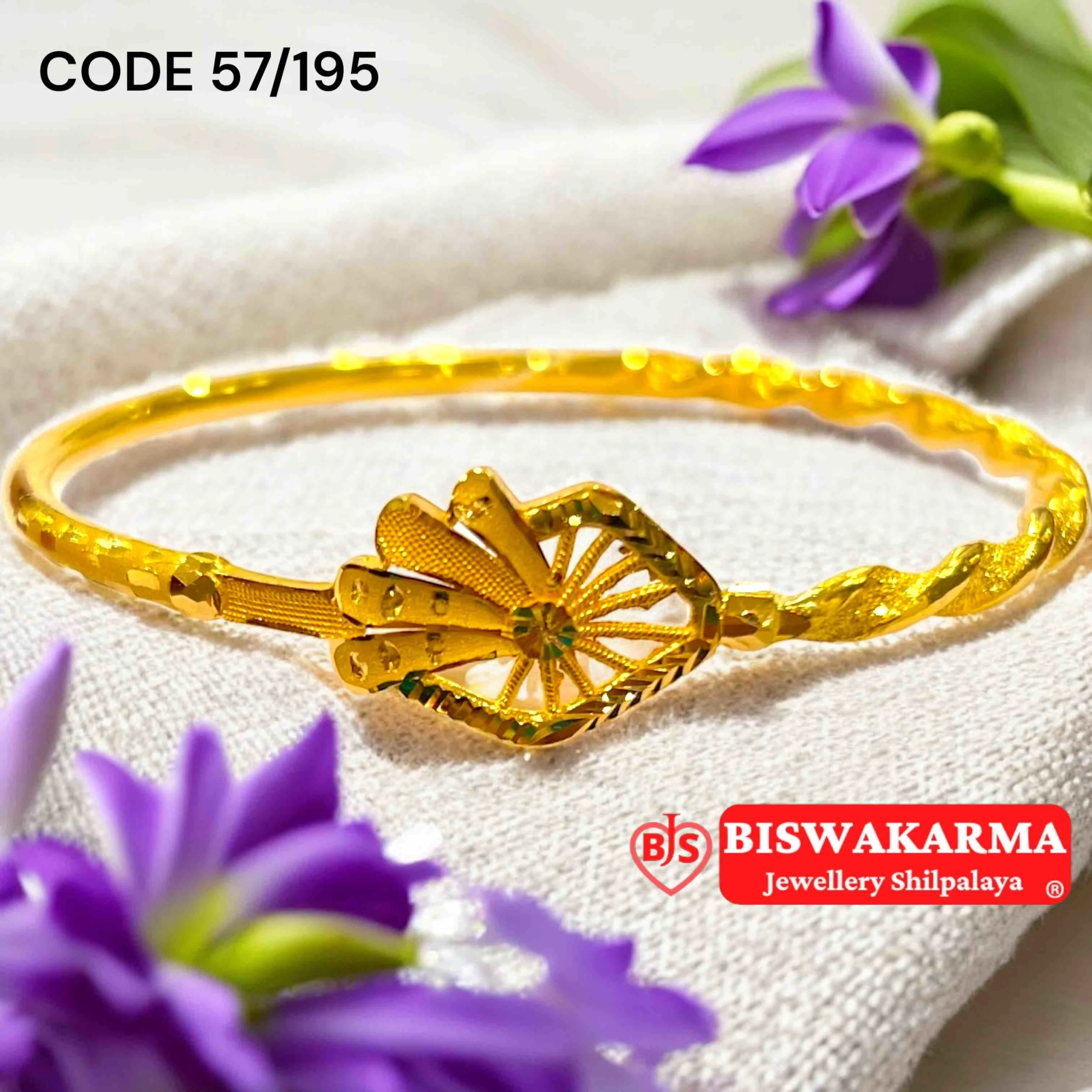 Artistic gold cover bangle featuring a fan-inspired floral motif and twisted band, adding a graceful charm to your everyday elegance.