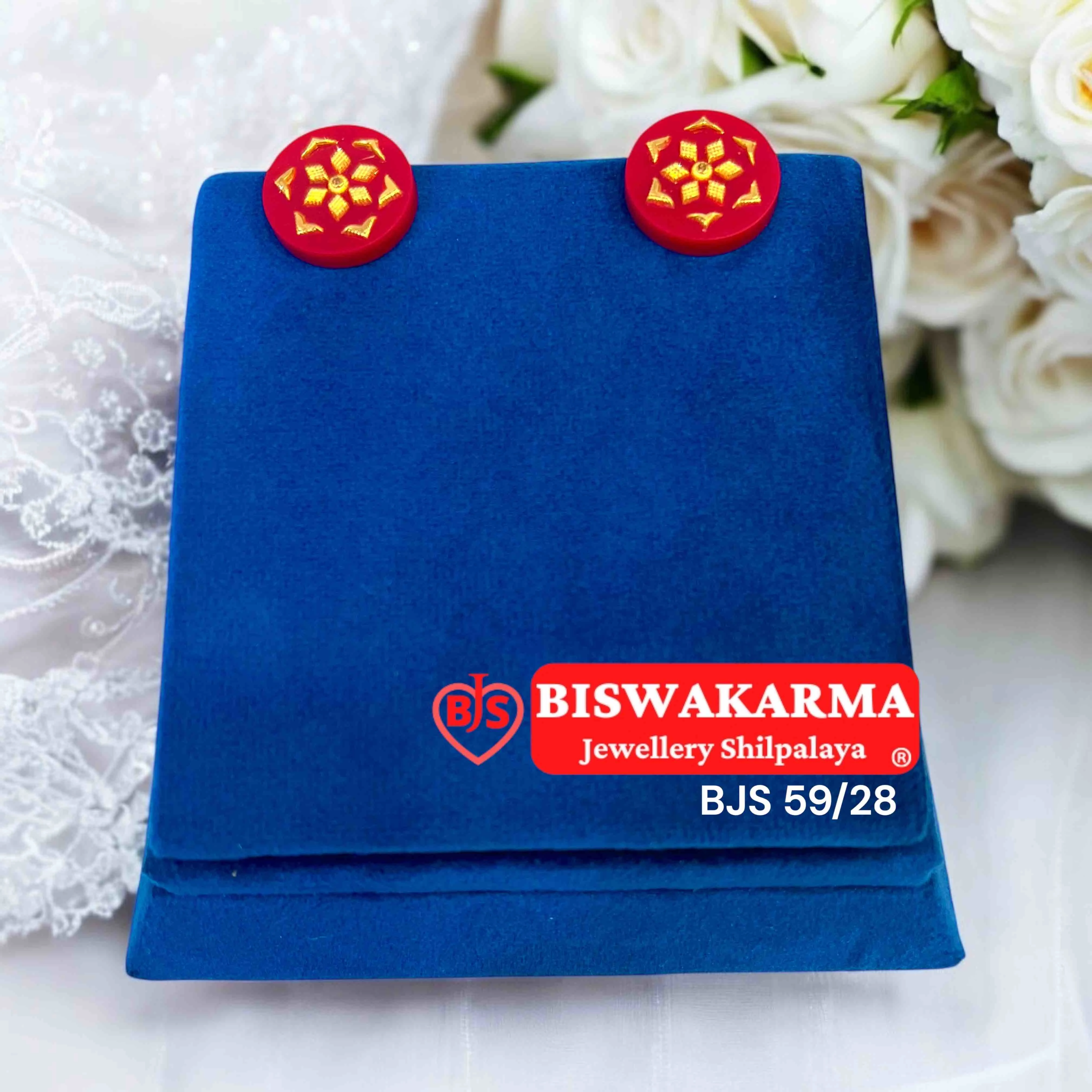 Traditional red pola earrings with golden floral detailing, symbolizing grace and culture while adding a vibrant festive touch to your look.