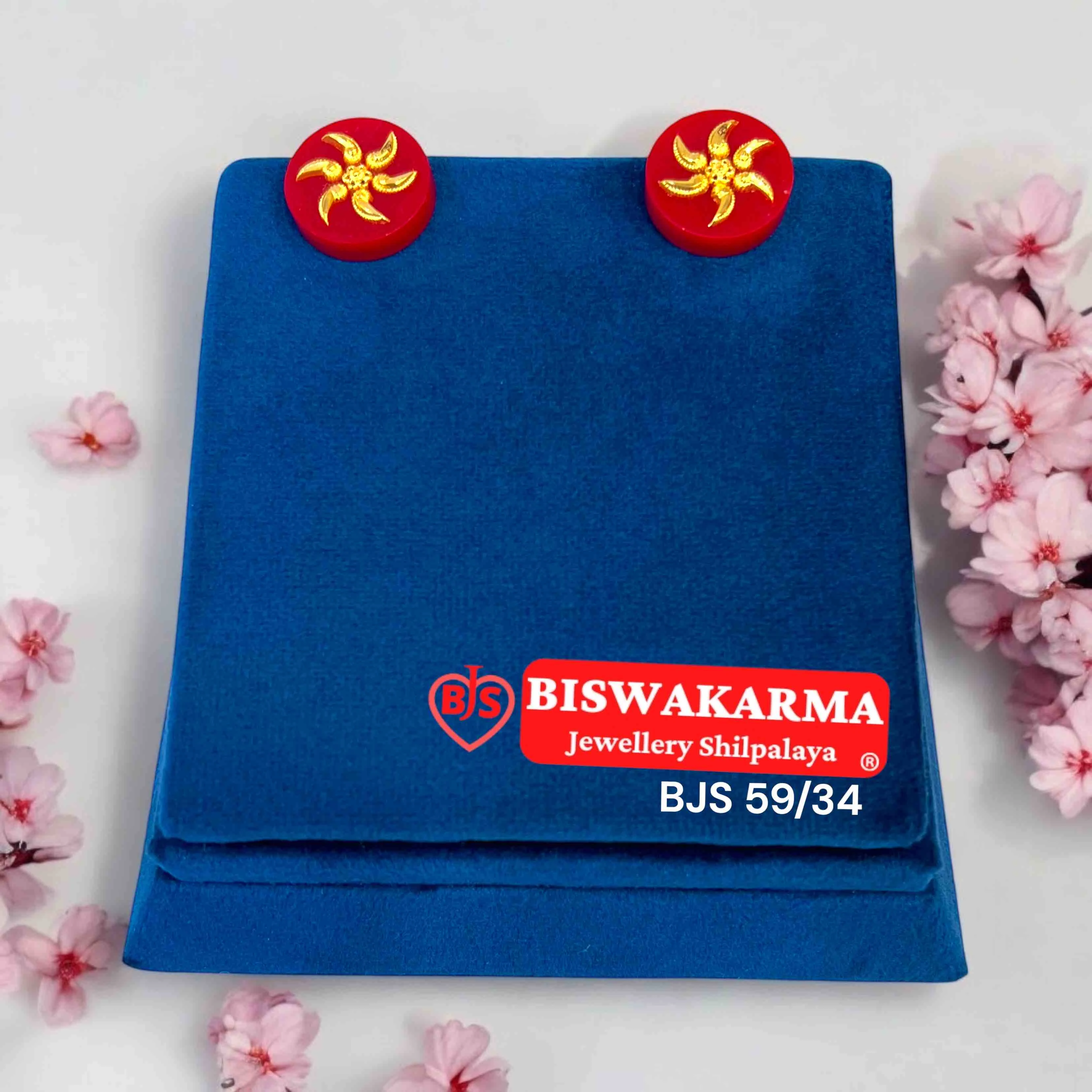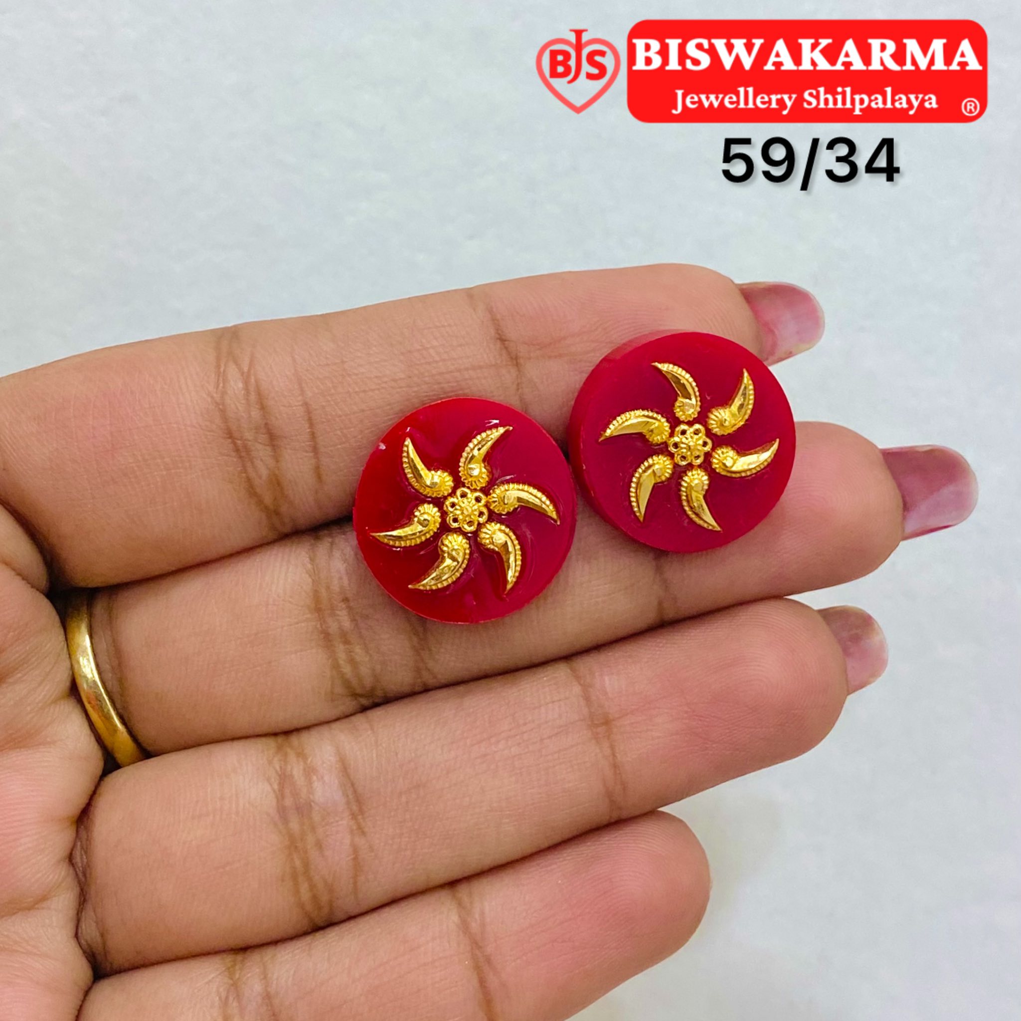 Red pola earrings with golden swirl motifs, crafted to reflect cultural beauty and add a bold, graceful touch to every festive occasion.