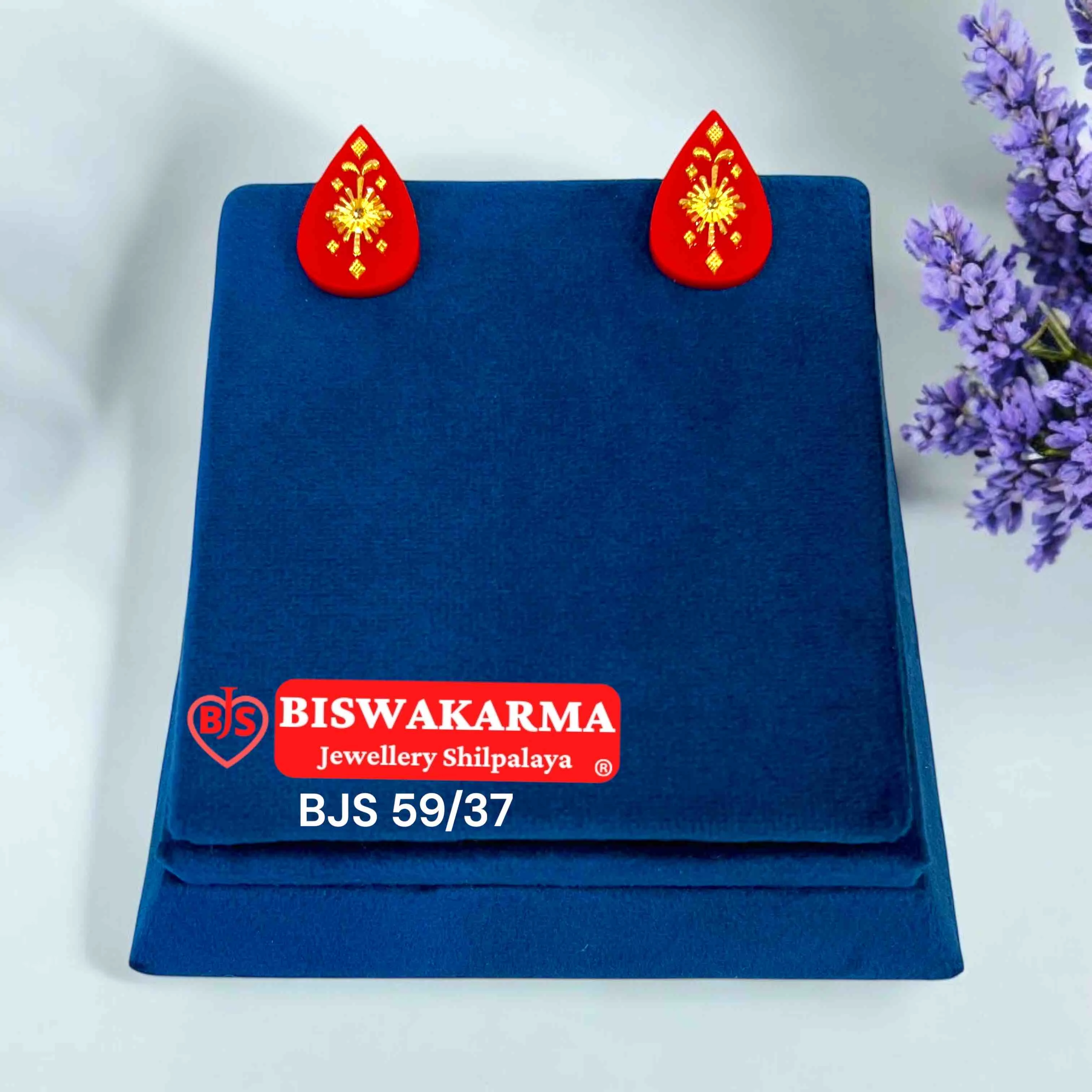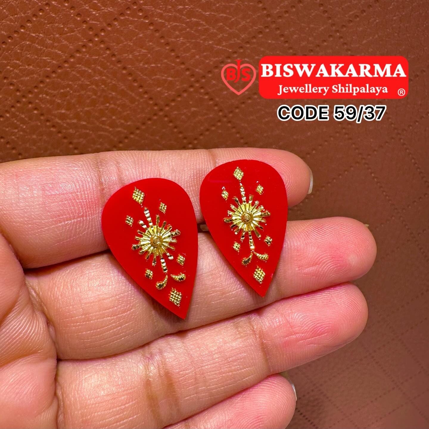 Elegant red pola earrings in drop shape with golden floral detailing, adding a classic traditional charm and festive glow to your look.