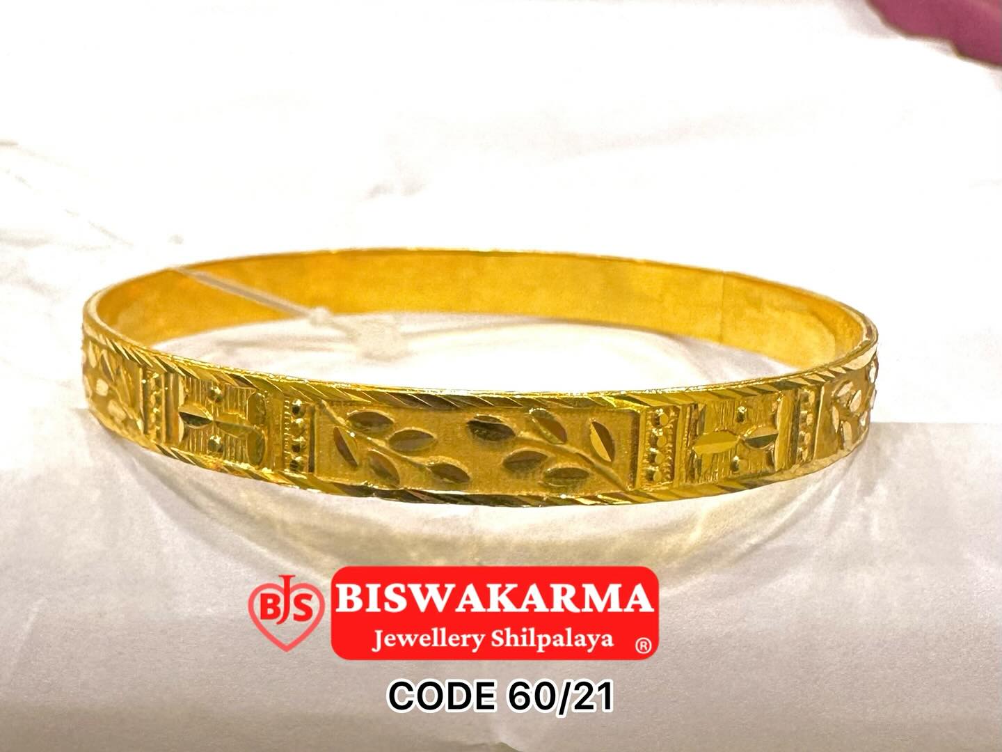 Beautiful gold cover bangle with embossed leaf and motif detailing, offering timeless traditional charm and everyday elegance in one design.